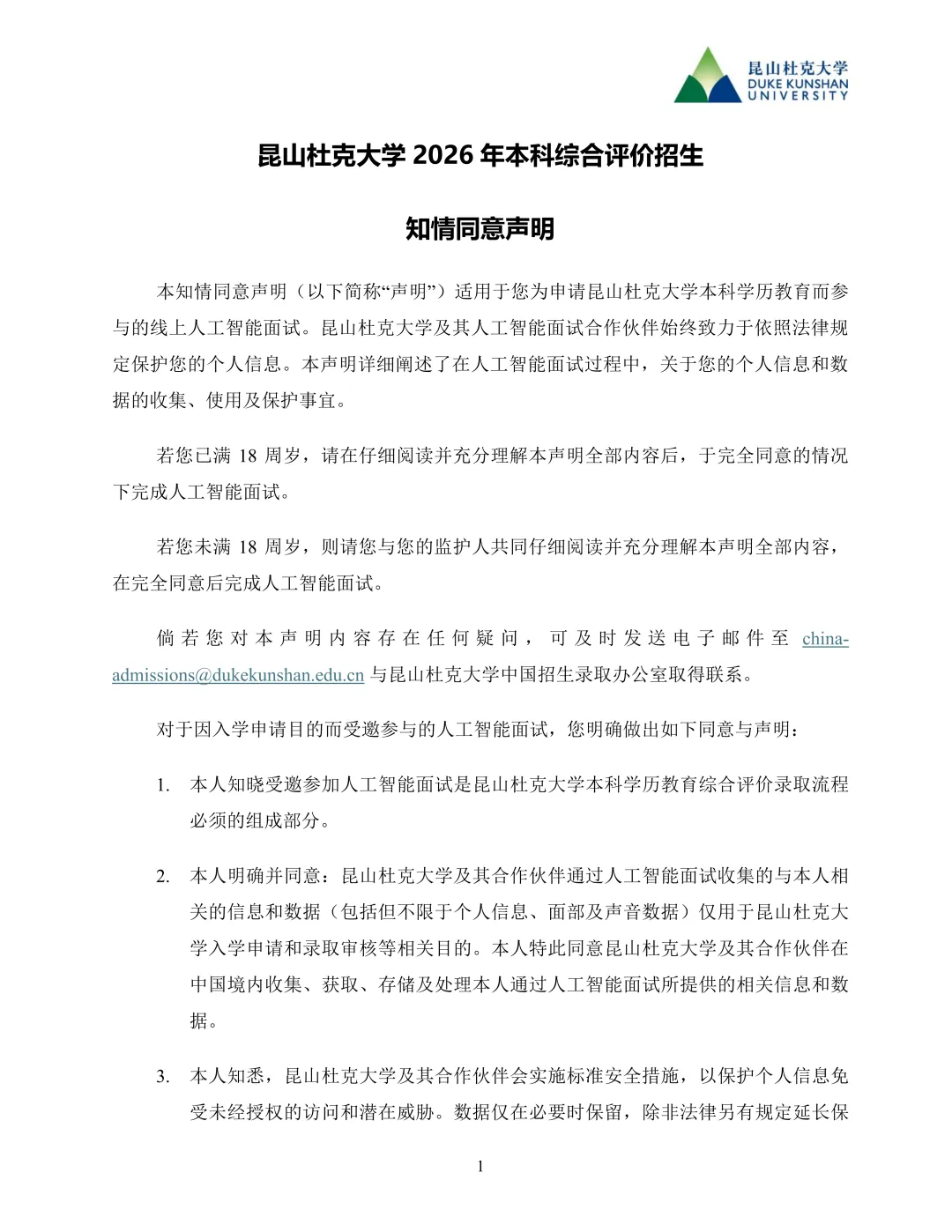 自主选拔在线汇总整理了昆山杜克大学2026年综合评价知情同意声明及面试操作指南,还有历年试题参考。一起来看!