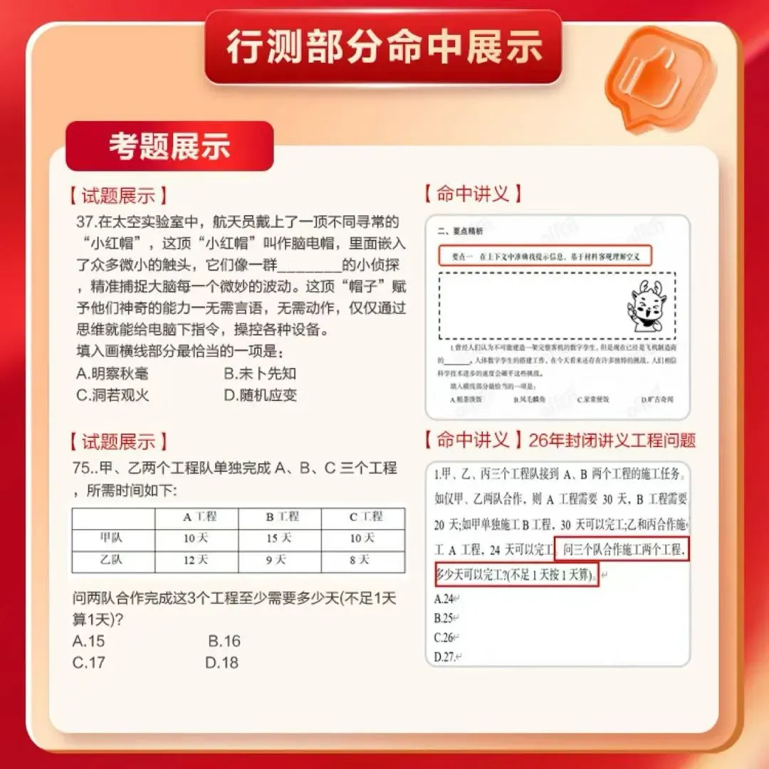 6、赠送AI学习机,全流程伴学:行业首创、中公自研大模型+DeepSeek打造AI黑科技;内置价值10万+2万精品课时无限畅学(8大热门项目+考研+四六级+专业技能),30000+核心考点智能推送,AI自动规划学习任务,24小时AI答疑随时问问题,AI申论批改只需10s,海量题库每月能力雷达图,成长看得见!