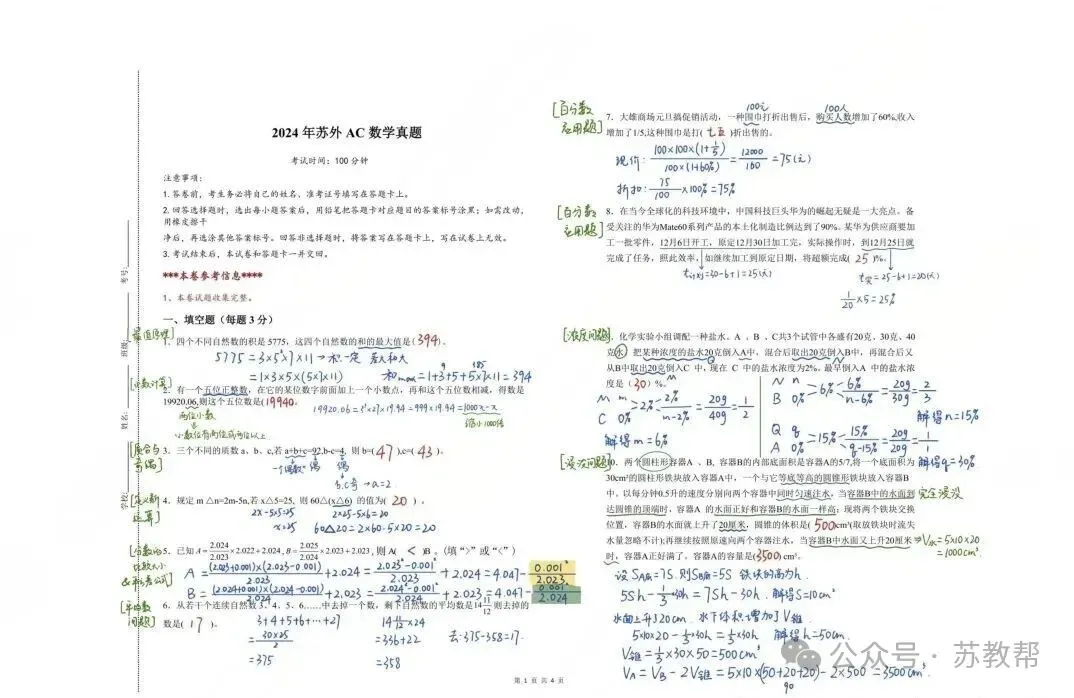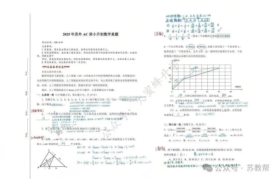 >苏外突发通知小升初考试就在明晚!2025真题+答案