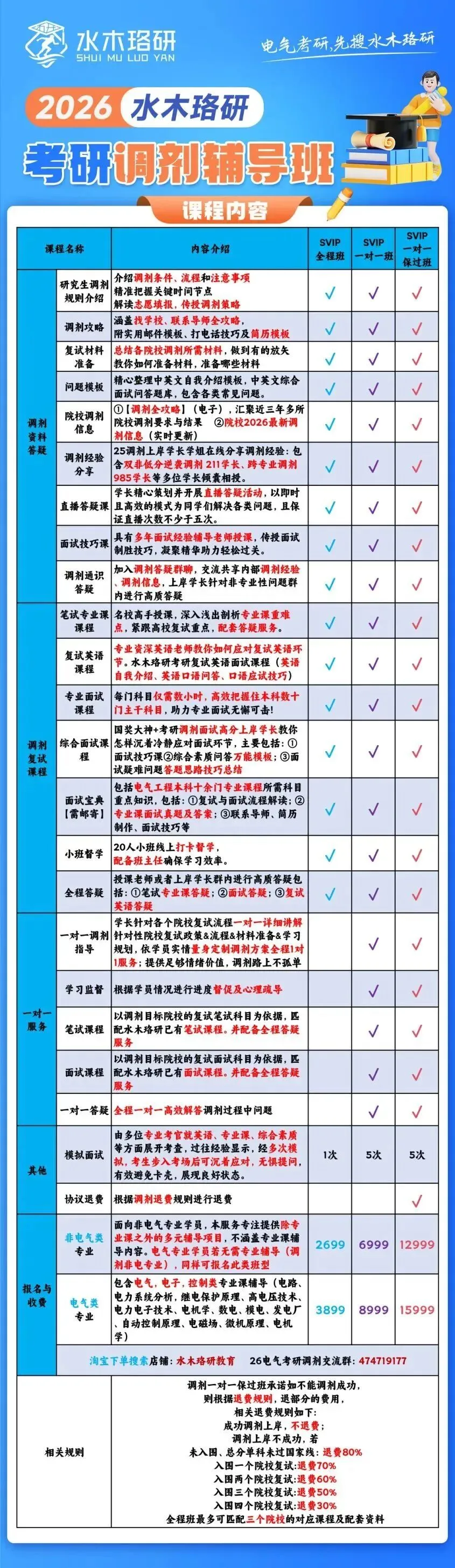 学长在这里也为大家准备了2026水木珞研考研调剂辅导班,希望能帮助大家快速掌握先机,稳稳接住这最后一次上26电气考研岸机会!!!
