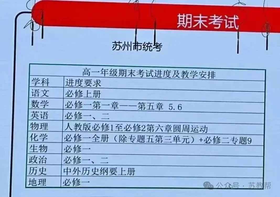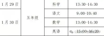 初二年级:考试时间1月29日-30日,语数外物4科苏州6区统考;