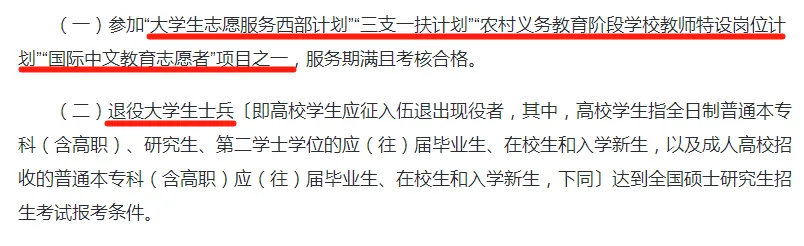 1. 基层服务干得好的人:参加了“西部计划”、“三支一扶”、“特岗教师”、“出国教中文”这些国家项目,服务期满了,考核也合格。那么回来3年内考研,初试总分可以加10分。