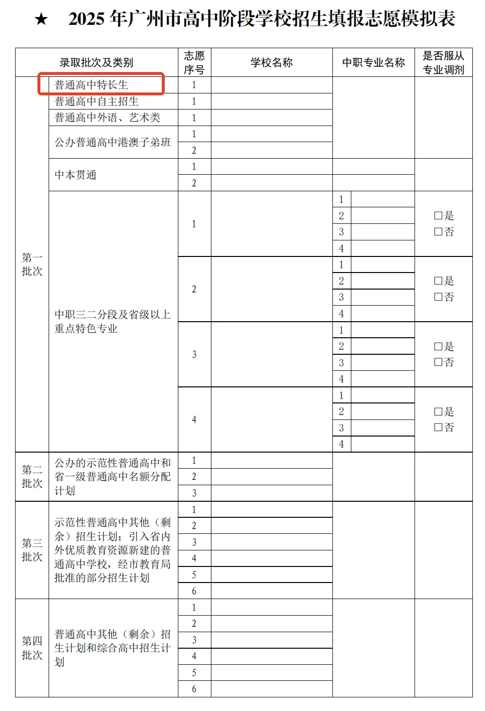 特长生在第一批次招生,共有艺术类、体育类、优秀体育后备人才三种类型。