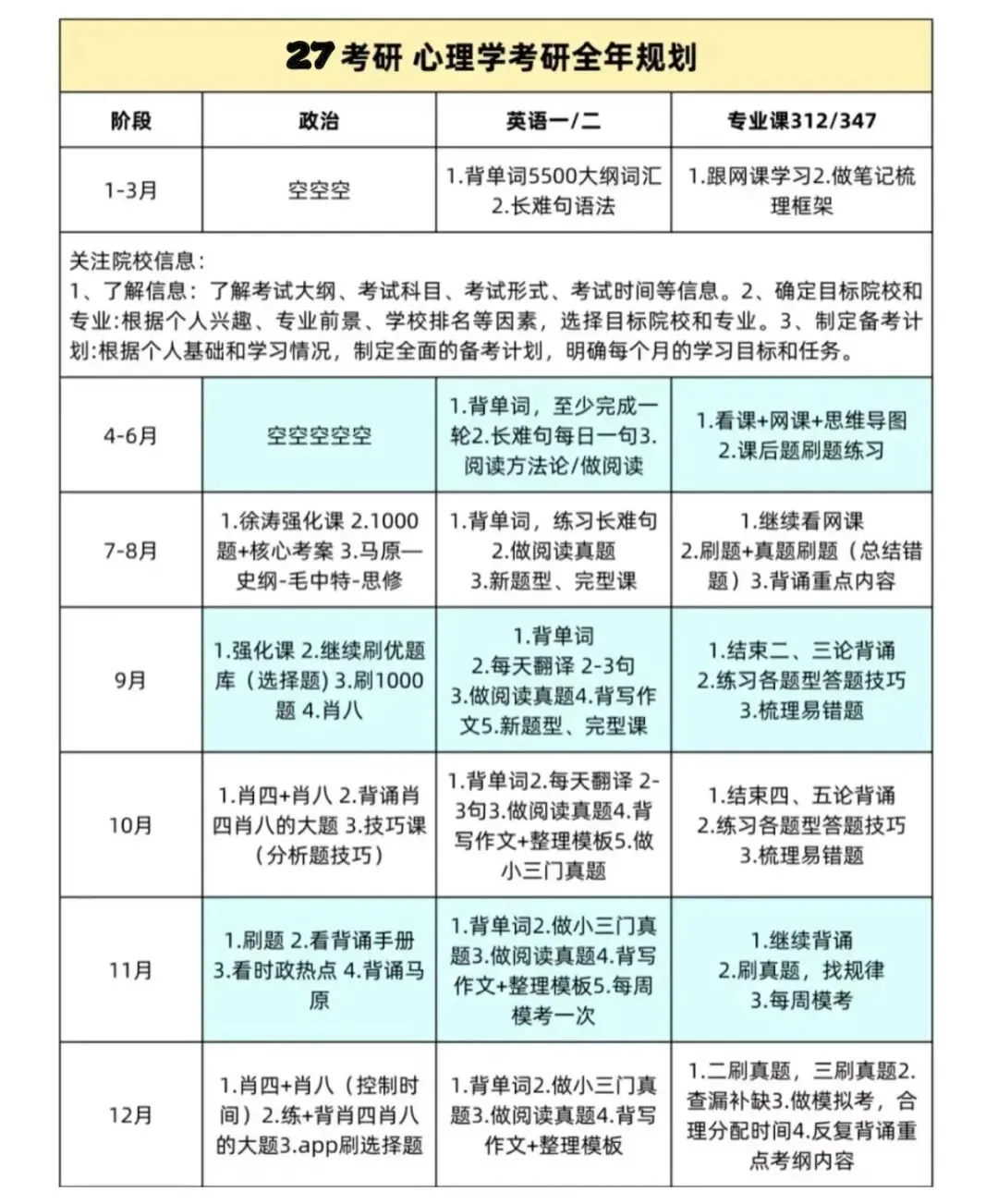 规划:25级心理学考研全年备考规划(全年备考答疑群来啦!!)