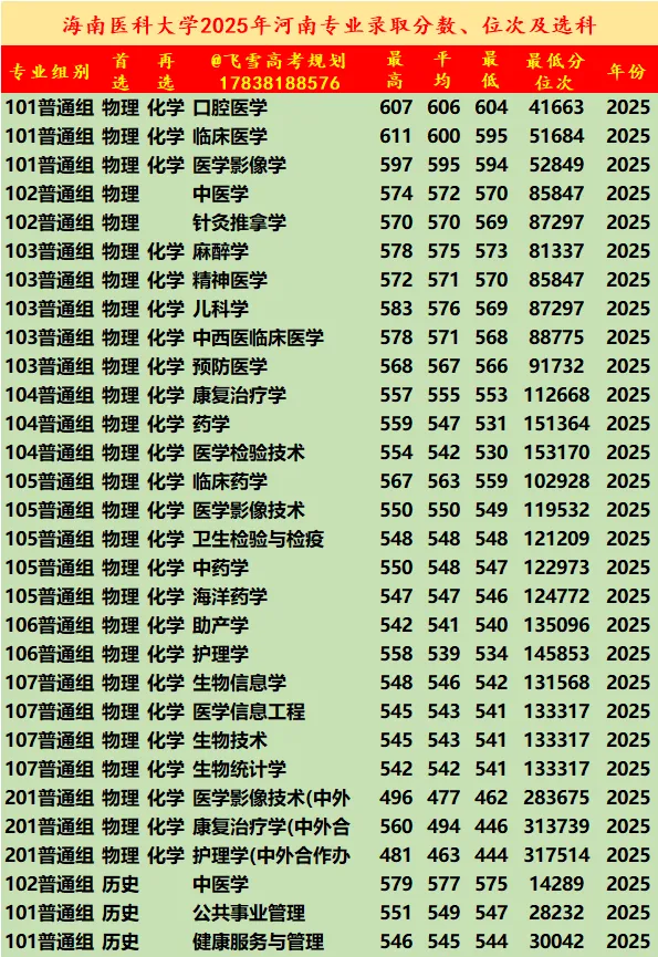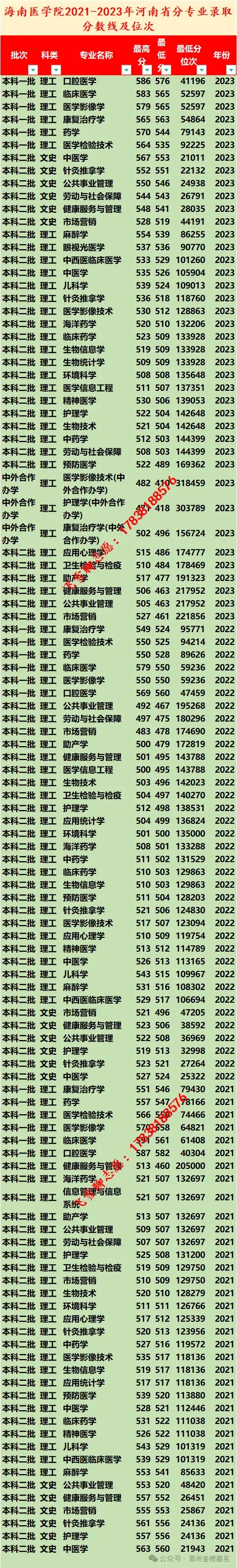 海南医科大学2021-25年河南录取分数线、位次及选科