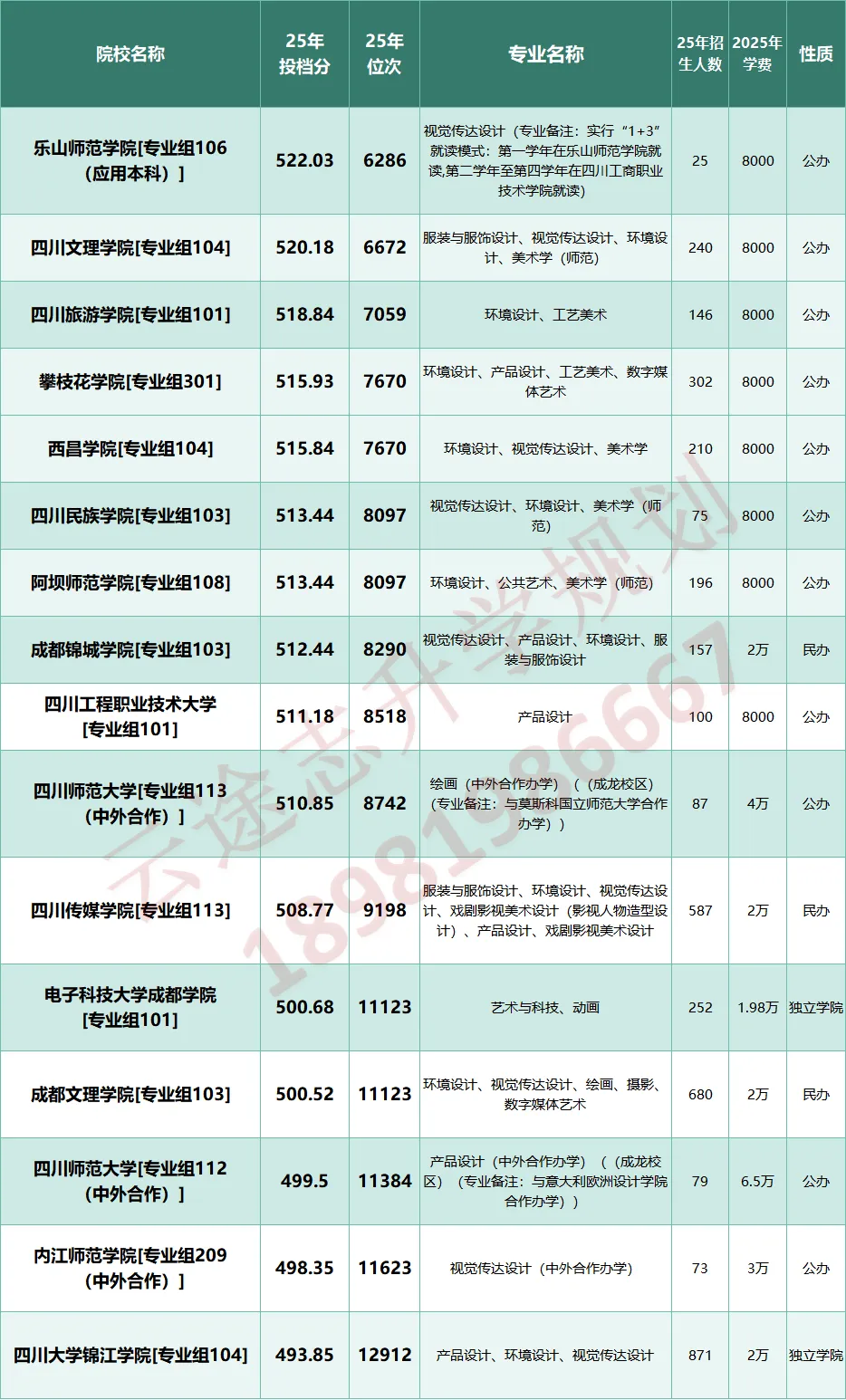 - 中外合作办学项目:为家庭条件允许的考生提供了“弯道超车”的路径。例如,四川师范大学与意大利欧洲设计学院合作的产品设计专业,学费高达 6.5万元/年,投档分为 499.5分(位次11384)。选择此类项目,需仔细权衡高昂学费与可能获得的国际教育资源、文凭之间的关系。
