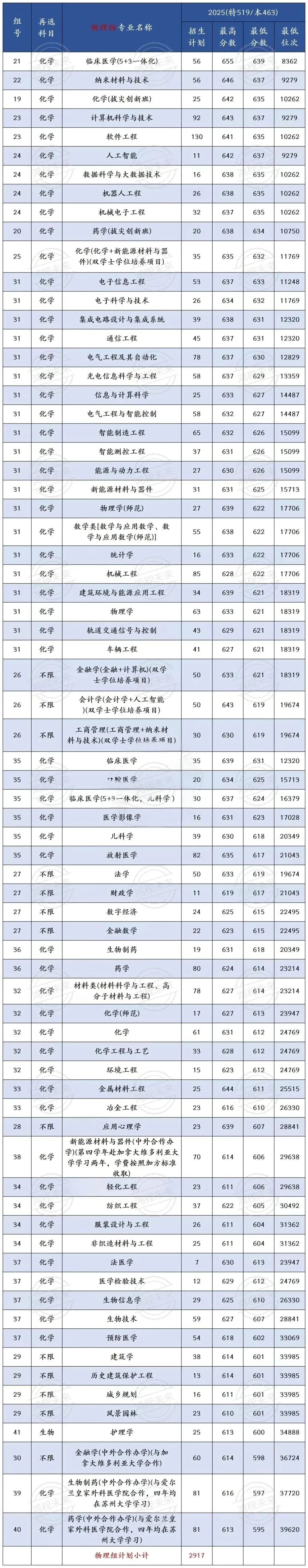 选考物理,录取分最低的是药学(中外合作办学)(与爱尔兰皇家外科医学院合作,四年均在苏州大学学习),分数是595分。选考物理,录取分最高的是临床医学(5+3一体化),分数是655分。