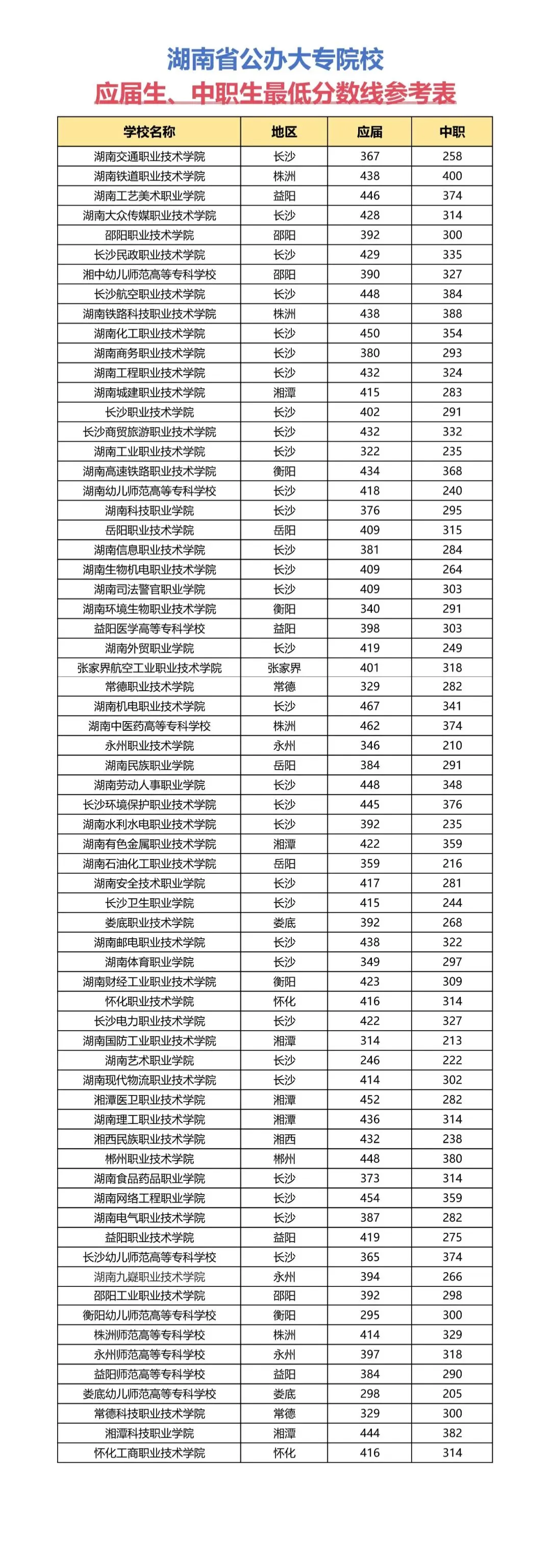 >湖南单招公办院校最低录取线