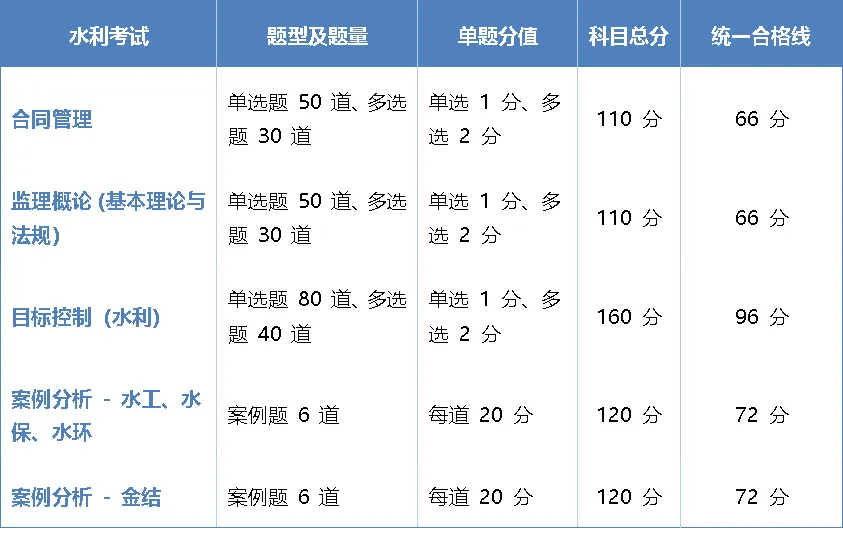 4.水利案例试卷:方向一水工、水保、水环一张试卷,方向二金结一张试卷,但是钱4道试题一样,后2道不一样