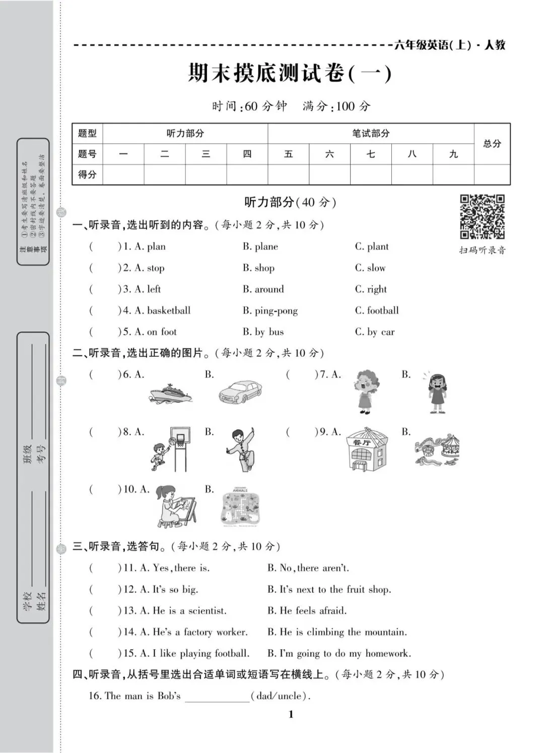 2025秋六上英语(人教版)亮点激活大试卷 +附答案+附听力