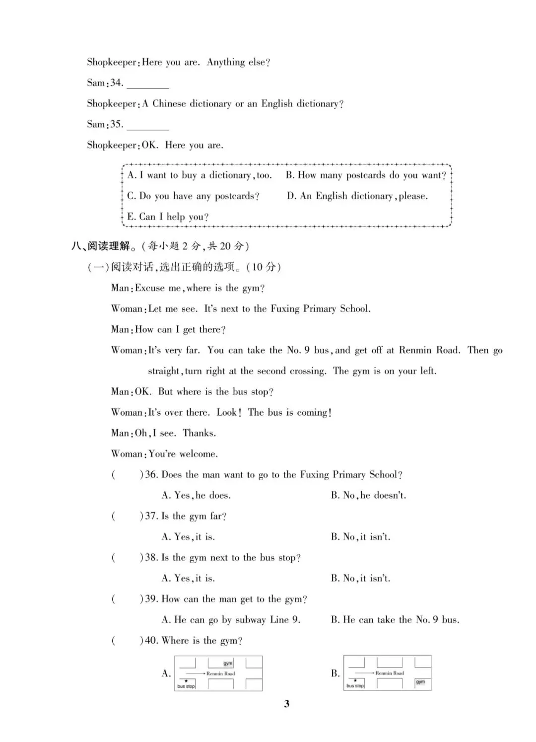六年级上册英语(人教PEP版)期末考试卷(10套含答案).pdf+附答案