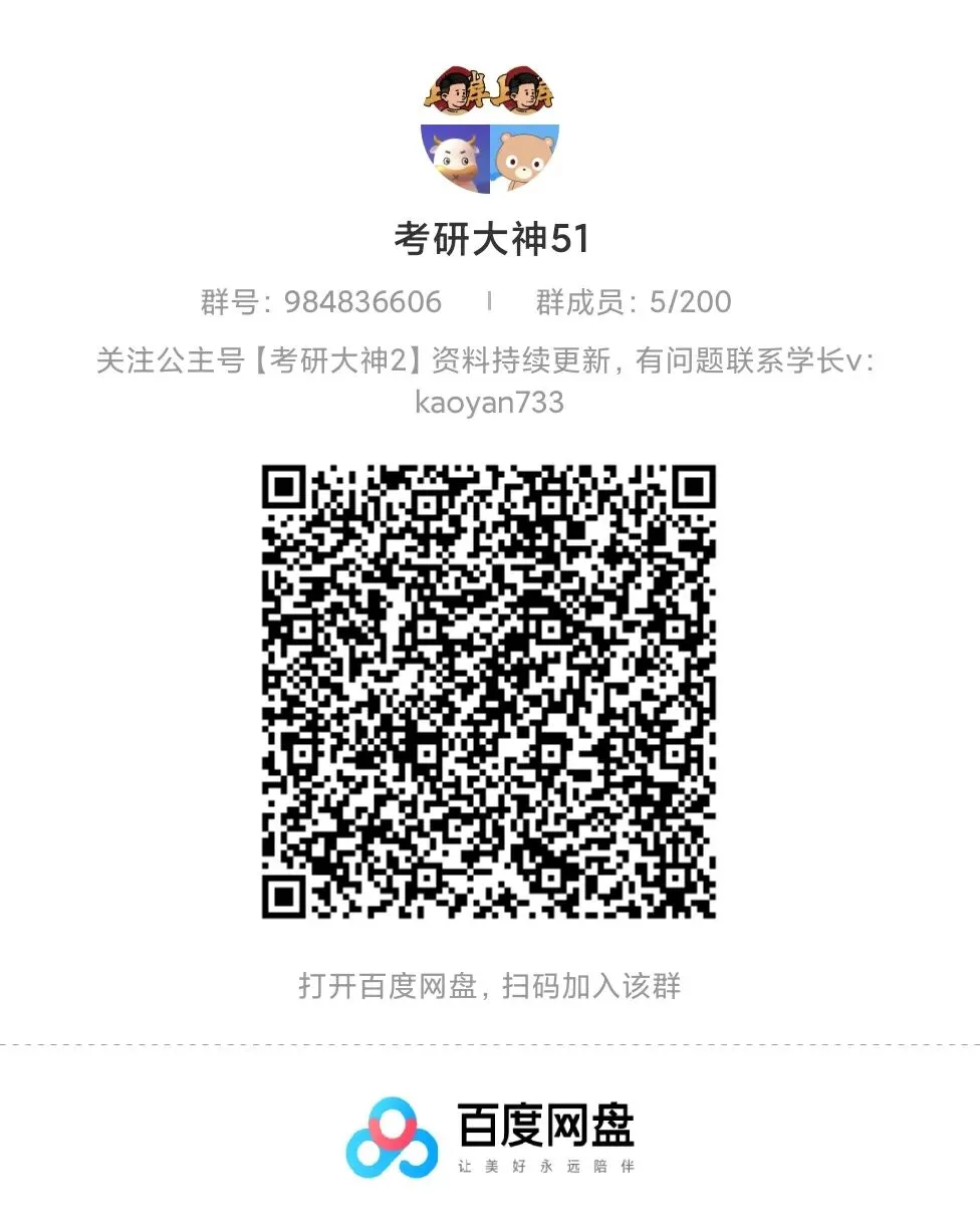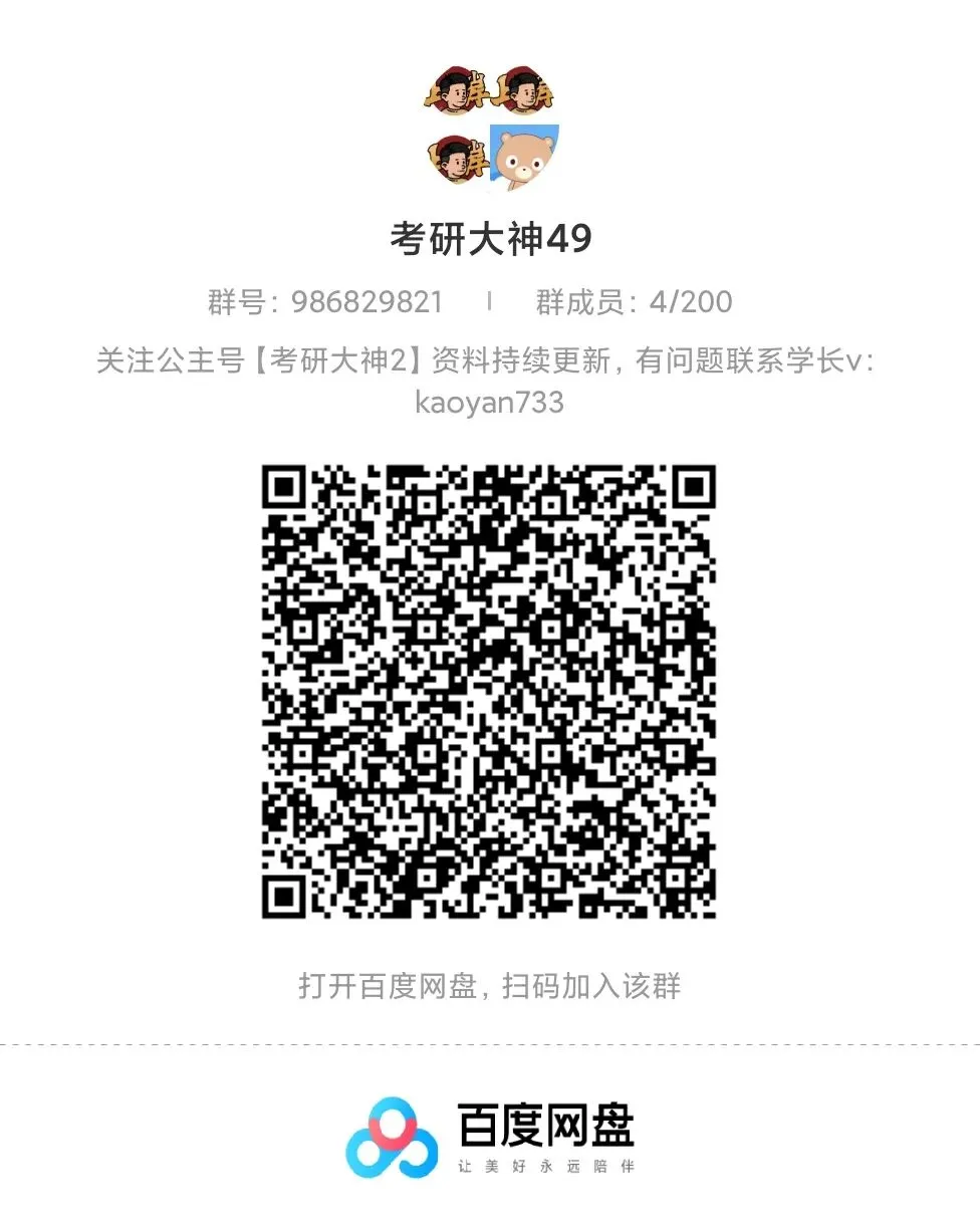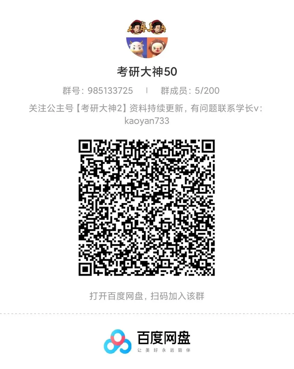 不管你是刚确定目标的“新手”,还是正在打基础的“备考er”,都能在这里get到实用干货,还能和同届研友互相打卡、交流进度。别再独自摸索啦,进群一起高效备考,向着目标院校冲!公众号【考研大神2】26/27考研网盘群直进https://www.kdocs.cn/l/cuLYImN6BR73