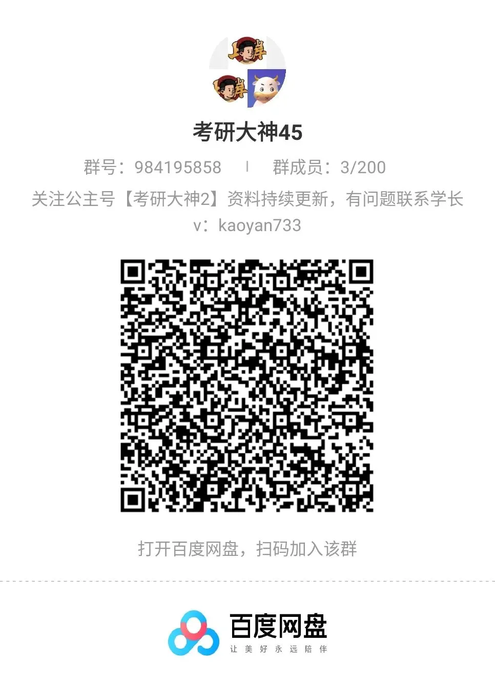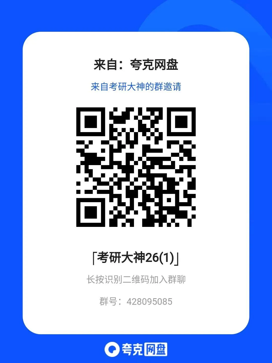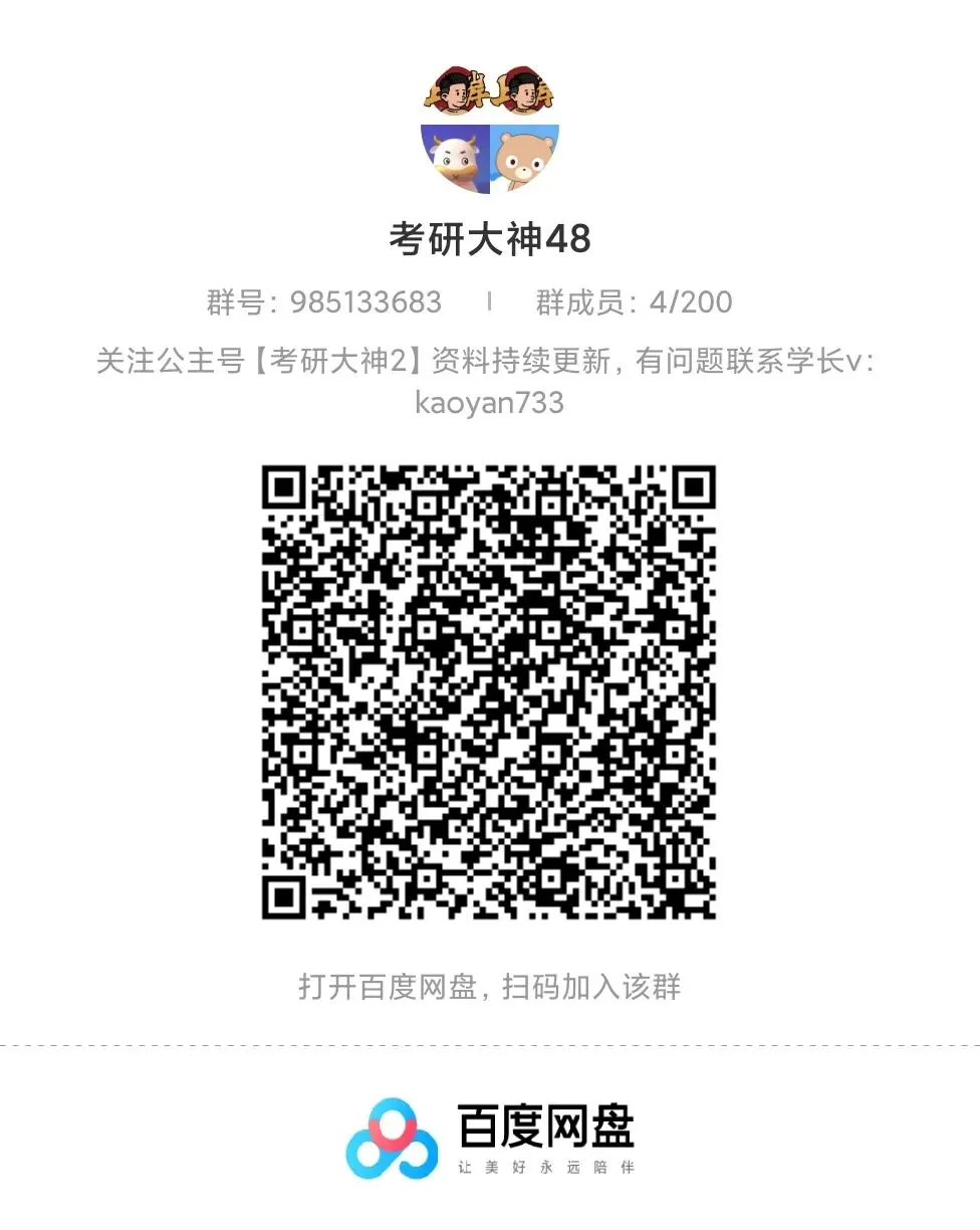 不管你是刚确定目标的“新手”,还是正在打基础的“备考er”,都能在这里get到实用干货,还能和同届研友互相打卡、交流进度。别再独自摸索啦,进群一起高效备考,向着目标院校冲!公众号【考研大神2】26/27考研网盘群直进https://www.kdocs.cn/l/cuLYImN6BR73