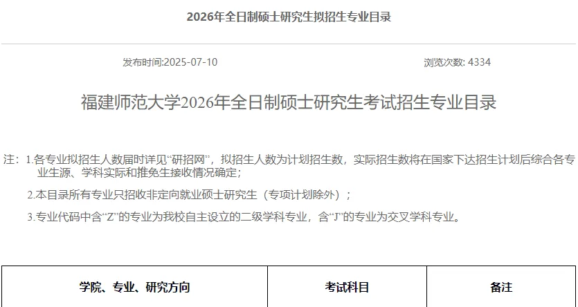 请考生关注我校研究生院和各学院网站,以便及时获取有关2026年硕士研究生招生的最新信息。关于所报考专业的具体问题,考生可向各学院咨询,联系方式见《福建师范大学2026年硕士研究生招生学院联系方式一览表》。