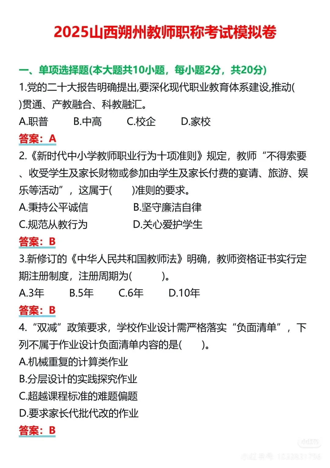 >2025山西朔州教师职称考试模拟题