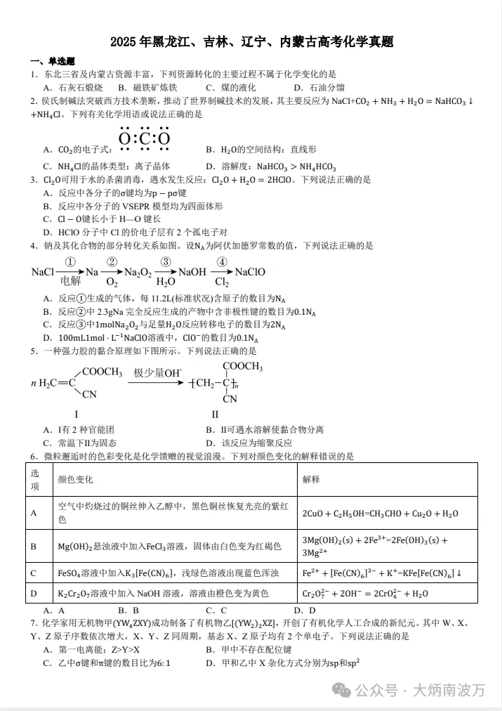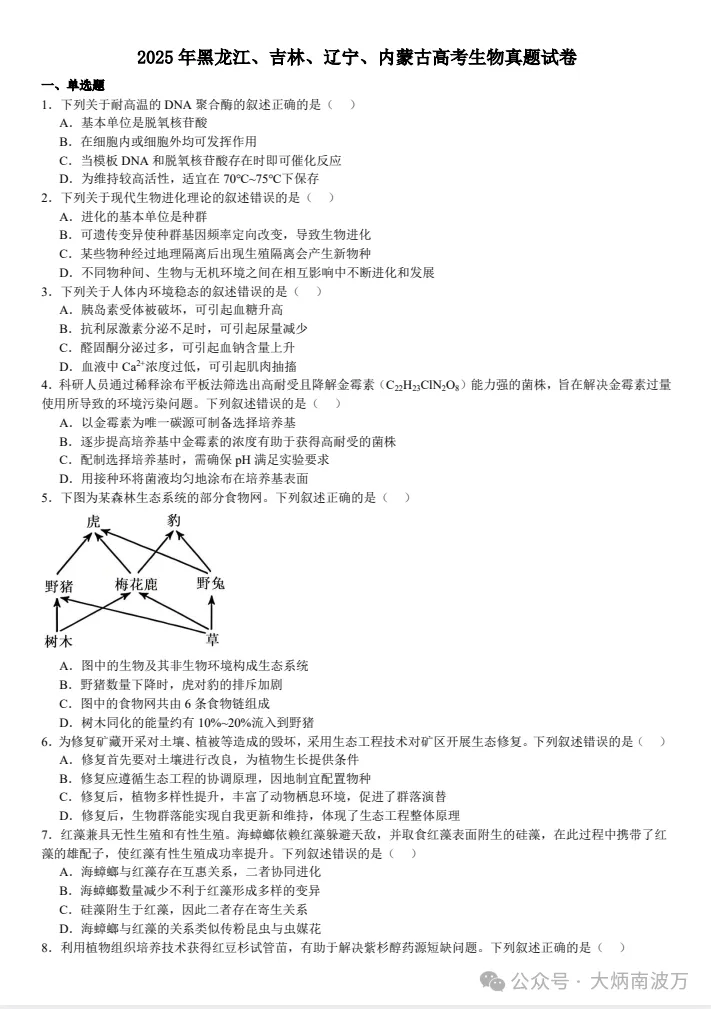 【异地升学】黑龙江省高考真题试卷||2025年黑龙江省高考真题试卷及答案解析、(全科目)PDF版免费分享
