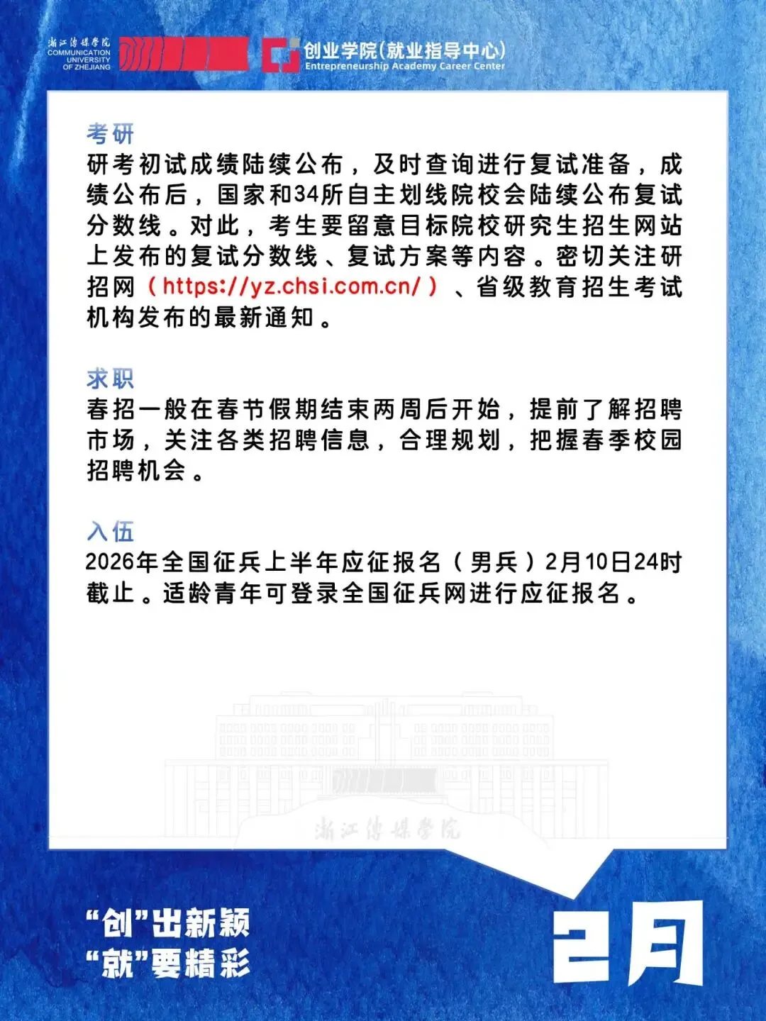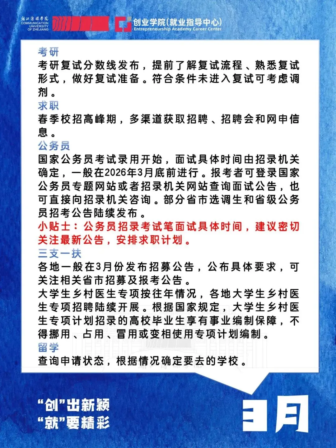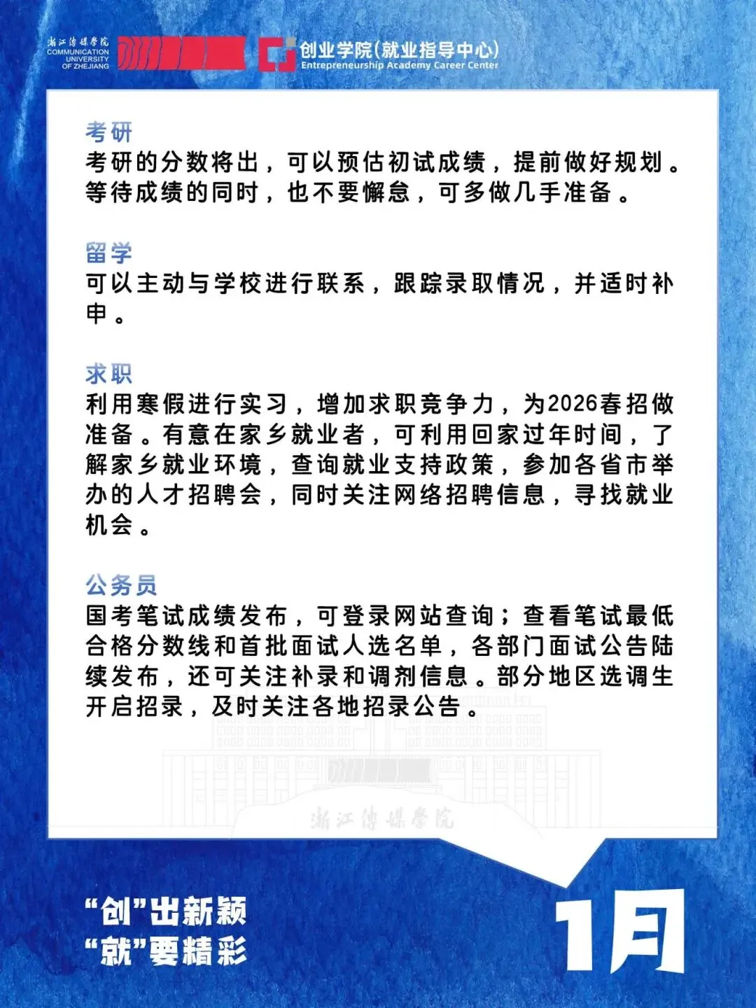 2026年,新年启新程。站在新的起点上,同学们要提前规划,明确目标,以便在升学与就业的道路上走得更稳、更远。考研、求职、公务员、入伍、留学……清晰掌握各重要时间节点与准备技巧。2026年升学就业月历请收好。愿这份升学就业月历伴你前行,所求皆如愿,所行皆坦途。