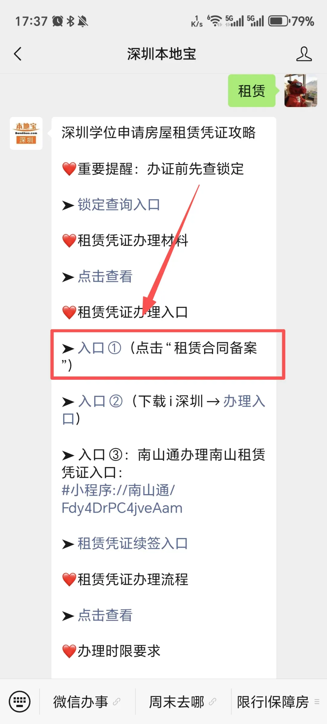 ✅第一步:进入深圳住建局小程序或i深圳APP;或扫描下方二维码,关注【深圳本地宝】,后台对话框回复【租赁】,获取摇号申请入口。