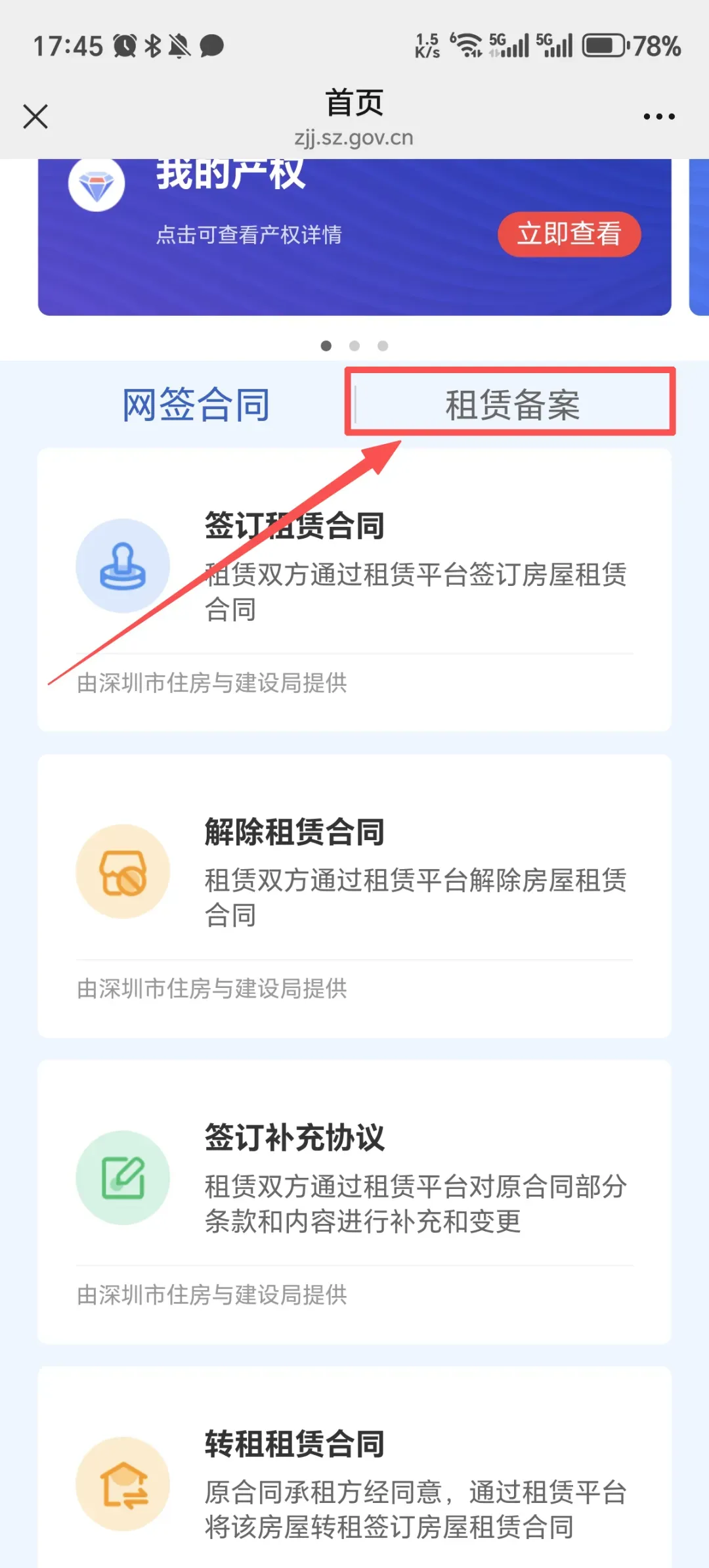✅第五步:房东进入“申请房屋租赁登记备案”- 选择产权 - 填写表单信息,提交审批