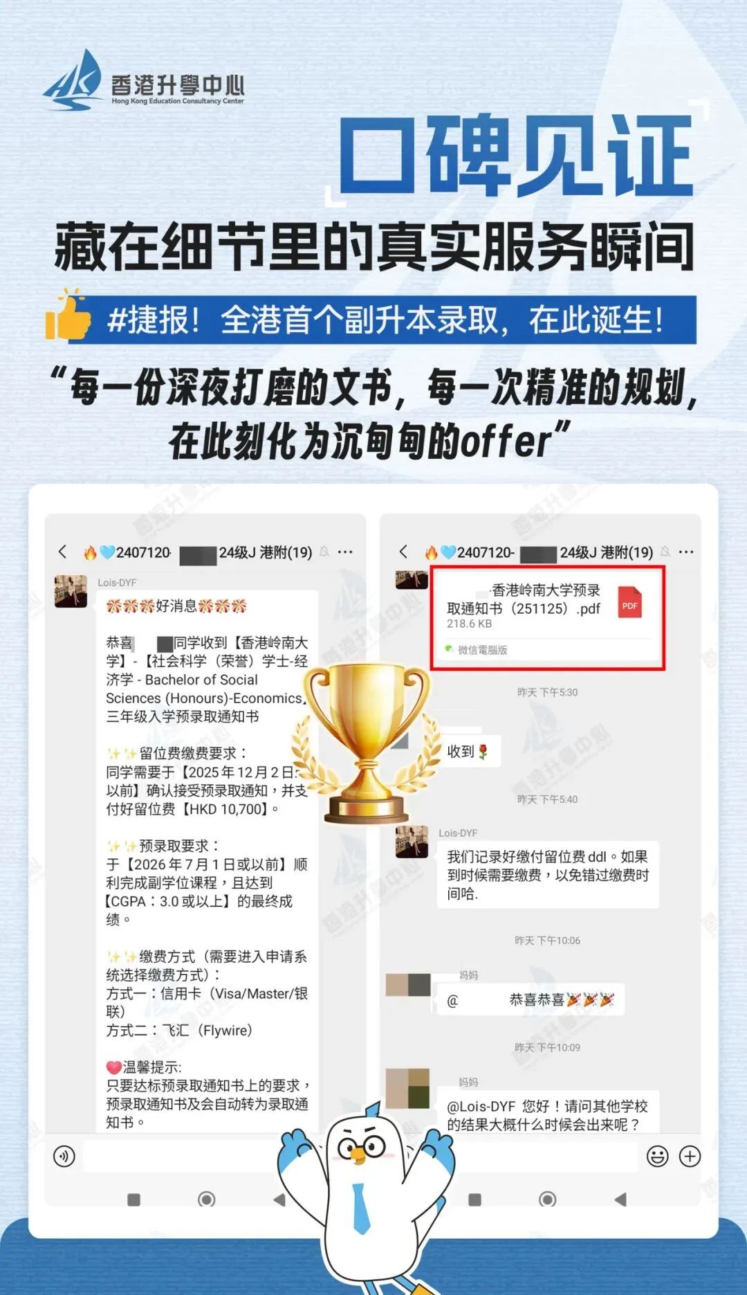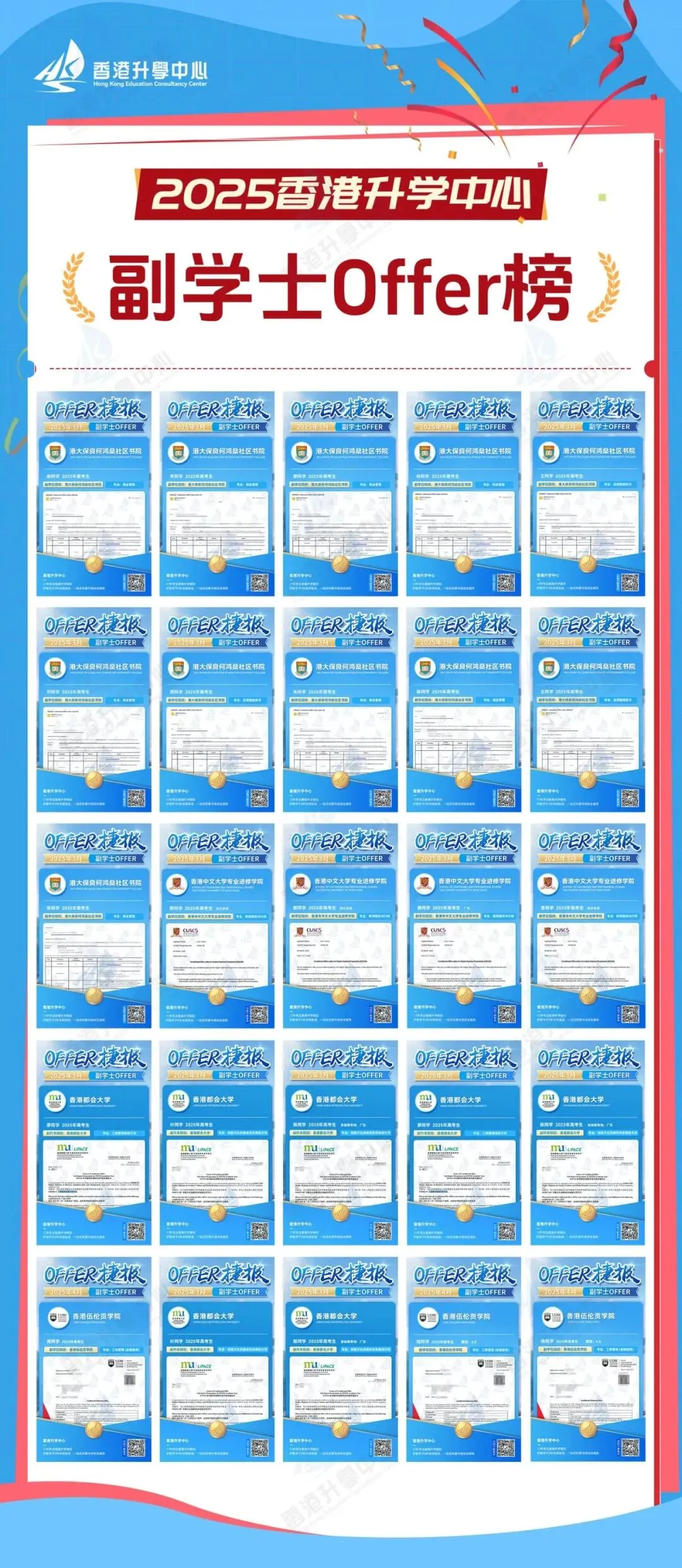 • 香港升学中心是内地首批引入副学士项目的教育机构之一,凭借深厚申请积淀,为学员提供定制择校规划+专属面试特训,全流程一对一跟进,累计助力学员斩获近300封副学士Offer!