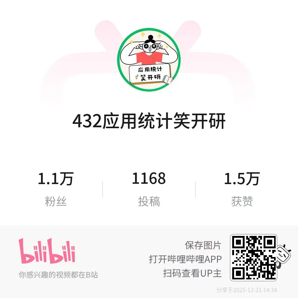 B站账号:432应用统计笑开研