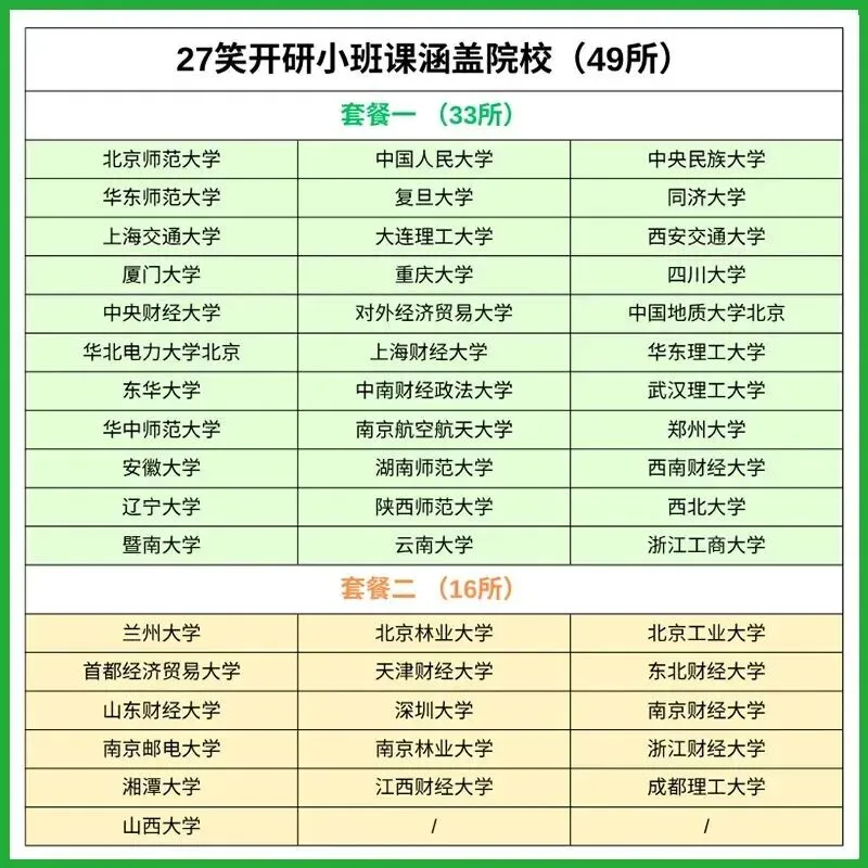 ✅定校小班课涵盖院校