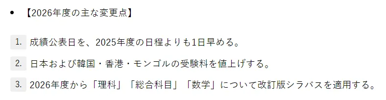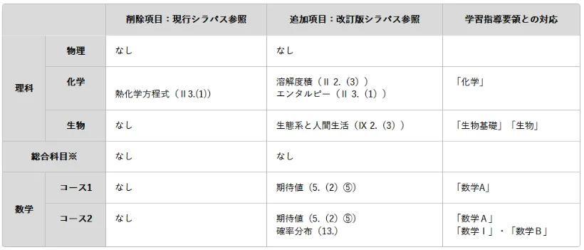 从2026年第1回考试开始,数学·理科·综合科目考试范围有变更。