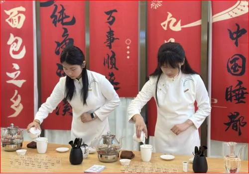图4-4资溪中专茶艺志愿者在国际茶日进行茶艺展示