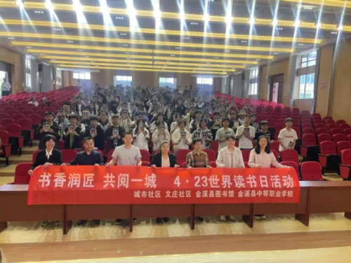 [金溪县中等职业学校]2025年4月23日,值此第30个世界读书日之际,金溪县中等职业学校联合文庄社区、金溪县图书馆,以“书香润匠共阅一城”为主题,成功举办了一场内容丰富、意义深远的读书日活动。本次活动金溪县中等职业学校师生代表、文庄社区居民代表、金溪县图书馆工作人员及读者代表等共计三百余人参与,旨在弘扬尊重知识、崇尚阅读的文化风尚,深化校社馆合作,营造“爱读书、读好书、善读书”的浓厚氛围,助力书香校园与书香城市建设。本次“书香润匠共阅一城”世界读书日主题活动流程顺畅、内容充实、成效显著,是金溪县中等职业学校、文庄社区与金溪县图书馆携手合作的成功实践。各方将继续共同努力,不断创新阅读推广形式,引导广大师生和市民在阅读中获取知识、启迪智慧、修养品格,为提升城市文化软实力贡献力量。