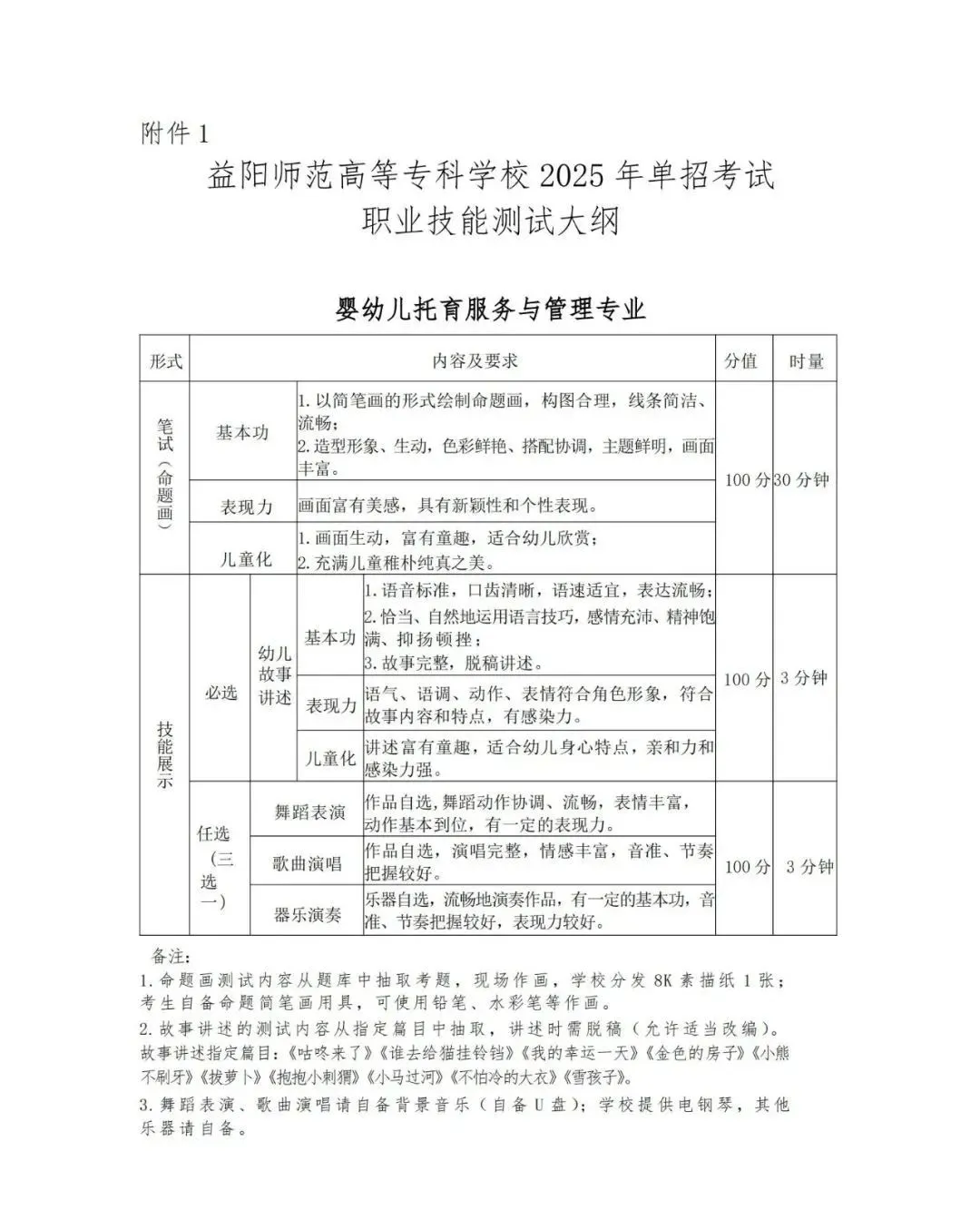 附件1:益阳师范高等专科学校2025年单招考试职业技能测试大纲