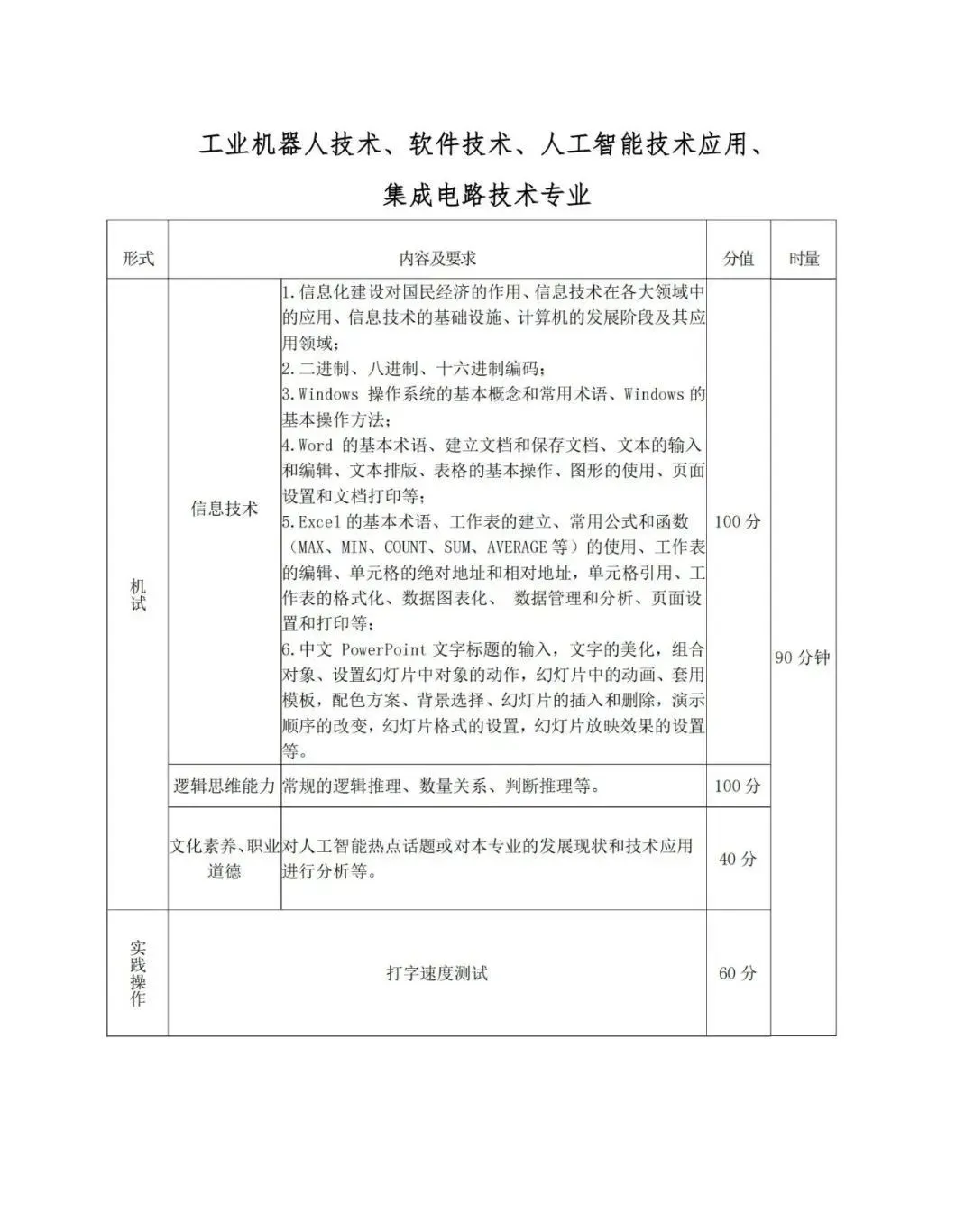 3.专业组四的专业(工业机器人技术、软件技术、人工智能技术应用、集成电路技术)采取机试+实践操作方式进行考察。