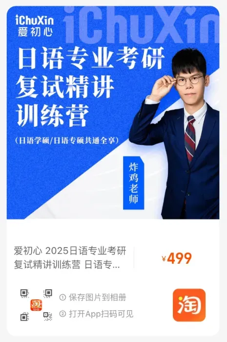 注:凡购买过爱初心日语考研通用实训课的同学可享优惠价格(请直接联系淘宝客服);爱初心特定院校小班SVIP/VVIP课学员可免费学习(请直接联系炸鸡老师)。