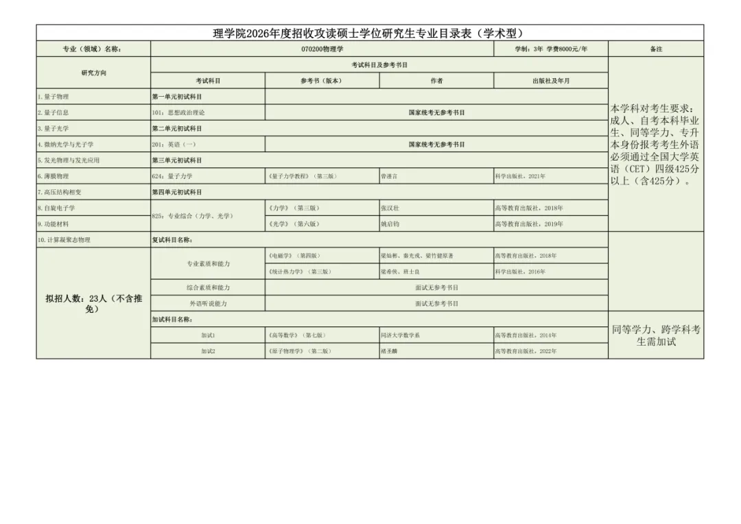 8.报考相关学科具体学业要求请查看我校发布的专业目录(少数民族骨干计划和退役大学生士兵计划无需满足学科学业要求)。
