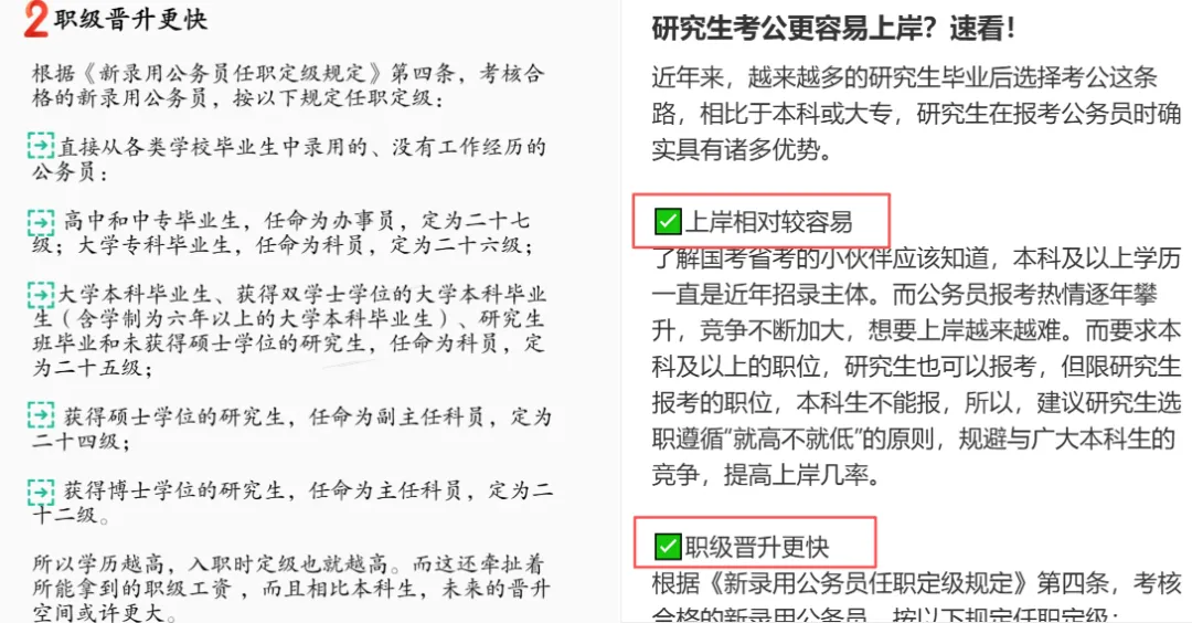 直接以本科生身份进入就业市场,选择范围和职业起点普遍低于研究生——比如公务员报考中,本科生可选择的岗位数量更少,职级定岗和晋升通道也多处于较低起点。