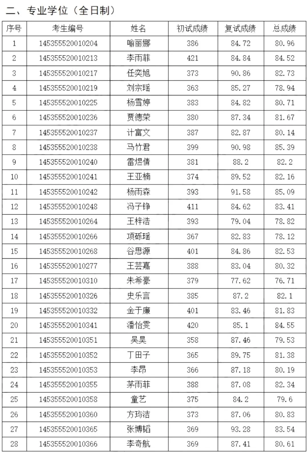 3.本年度仅1301艺术学专业多个方向有缺额,接受一志愿1352音乐等专硕申请,限同门类,专业科目相同相近,仅英语语种,4月8日0点开网,差额比例300%,总分遴选。
