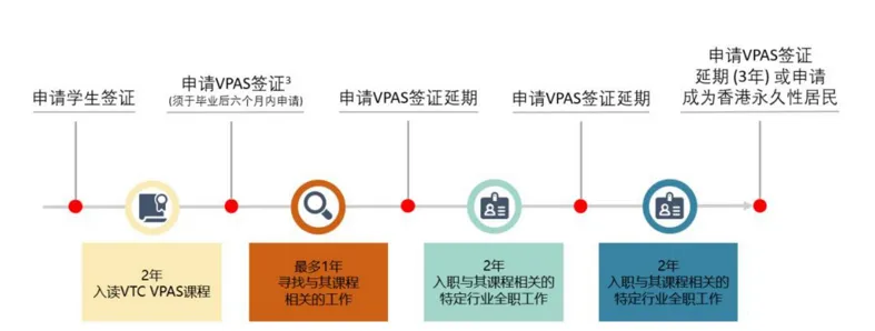 答:是的,非本地生完成VTC高级文凭合资格课程后,可申请职专毕业生留港计划(VPAS)留在香港工作,居港读书+工作满7年可申请香港永久性居民身份。