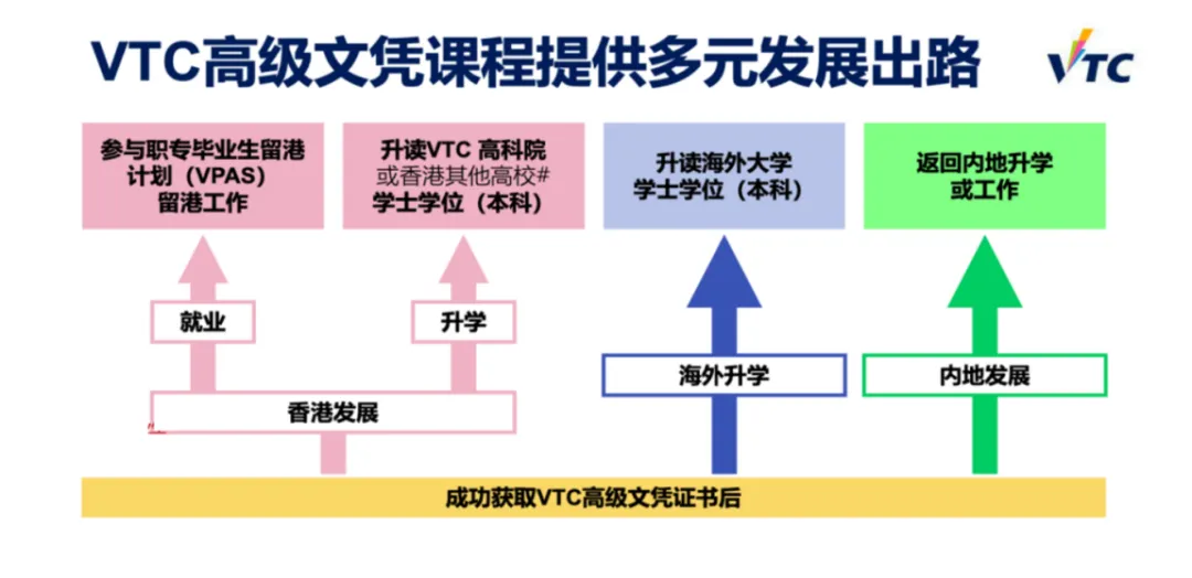 答:香港VTC是香港政府职专教育专业机构,成立近40年来培育了数百万专业人才,其颁发的文凭受国际认可。最让家长安心的是,VTC高级文凭毕业生升学路径清晰,毕业生能选择升读本地或海外本科学士(本科)学位,也可直接衔接VTC高科院学士学位课程第三年学习,最终获得的本科学历与直接读四年本科完全一致。