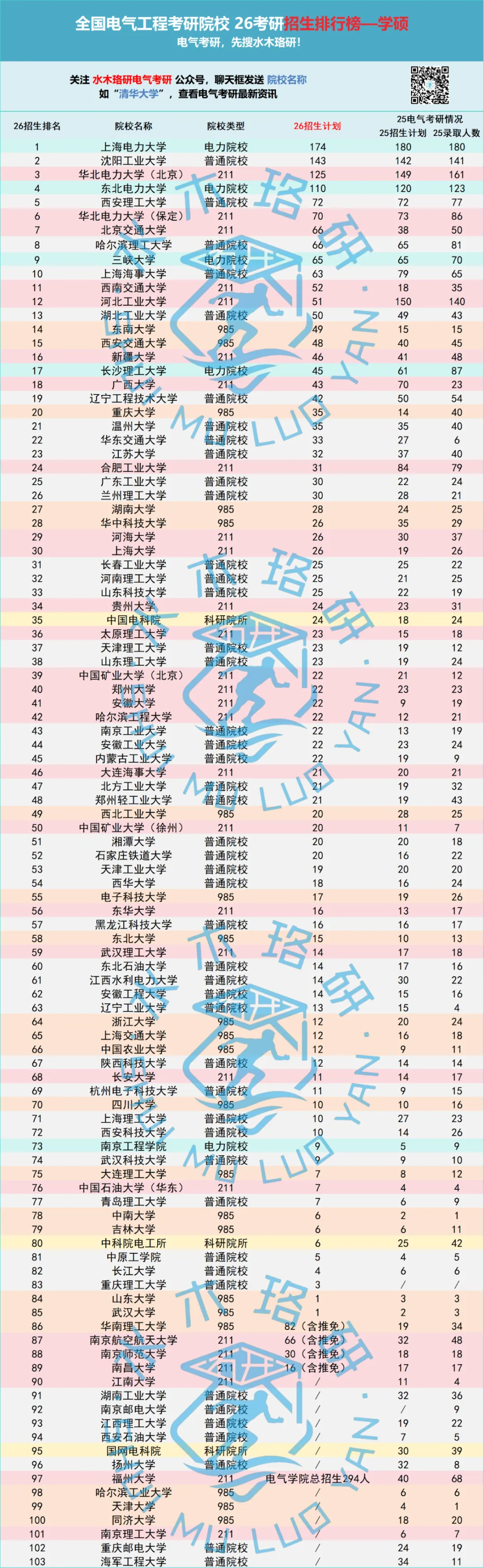 电气作为热门专业,也是国家发展战略下关键的专业,全国各大院校的招生名额也在逐渐上升,如26电气考研中,各大热门院校还在持续扩招!以26部分院校为例,如重庆大学电气专硕扩招33人,名额几乎翻倍;湖南大学电气专硕扩招19人,扩招76%;华北电力大学(北京)电气专硕扩招42人;沈阳工程学院电气专硕扩招80人!