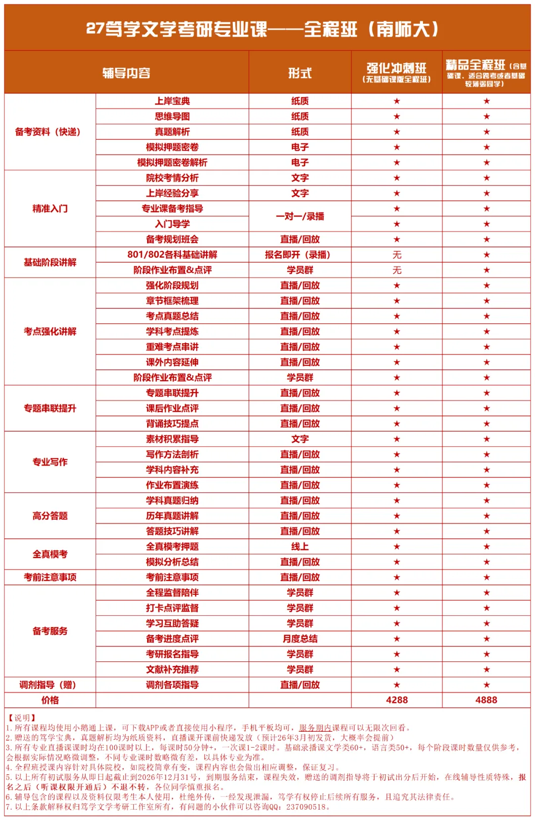 2.所有课程有效期至2026年12月31日,课程到期自动失效,全程班赠送的调剂服务将于出分后展开,具体关注学员群即可;配套的笃学宝典,真题解析均为纸质资料,报名后现货直发(27新版资料发放时间预计在26年农历春节前)。