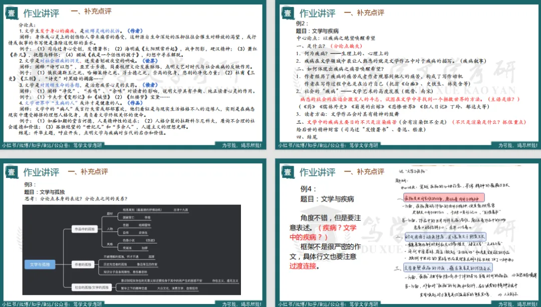 文学类专业写作和文学史、文学理论以及作品是密不可分的,也就和我们的专一复习是紧密相连的,写作精讲课将从什么是南师大写作讲起,认识南师大的针对考察形式,备考的底层逻辑,如何在复习专一的同时积累专二素材。针对不同的考察类型,总结特点,分析命题趋势,讲解写作思路,分析角度,鉴赏方法,实操带写等角度来进行全方位讲解。