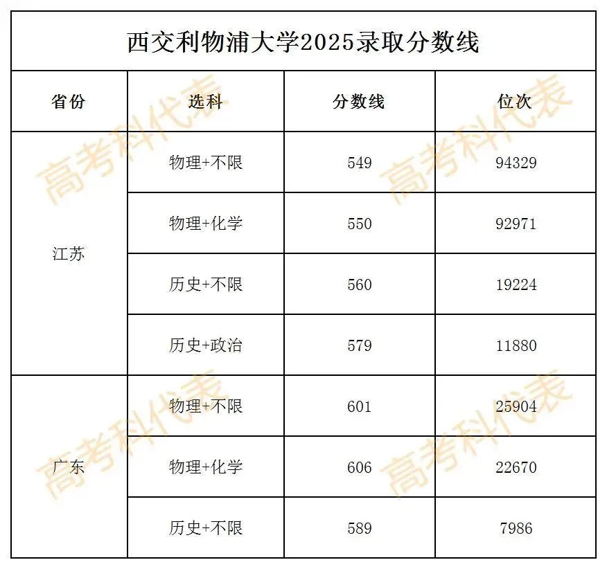 整理了西交利物浦大学2025年在江苏省、广东省的高考录取分数线及位次以供参考,比高考分数线低5-40分的考生都有机会上岸西交利物浦大学的综合评价。