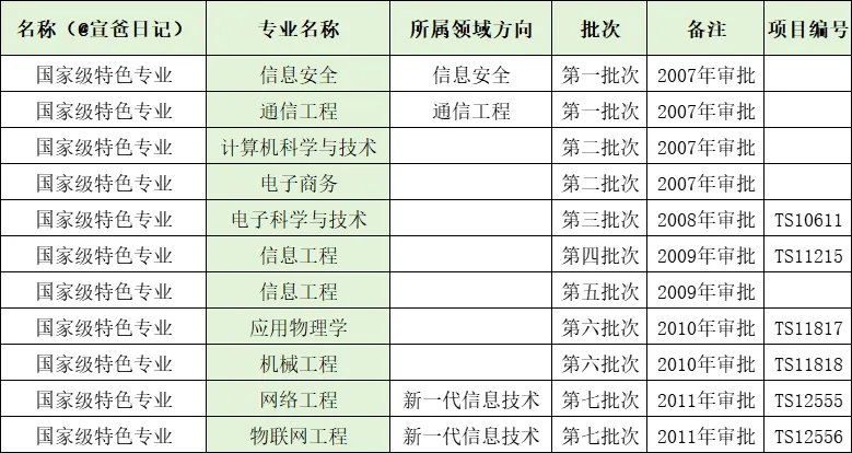 国家级特色专业: