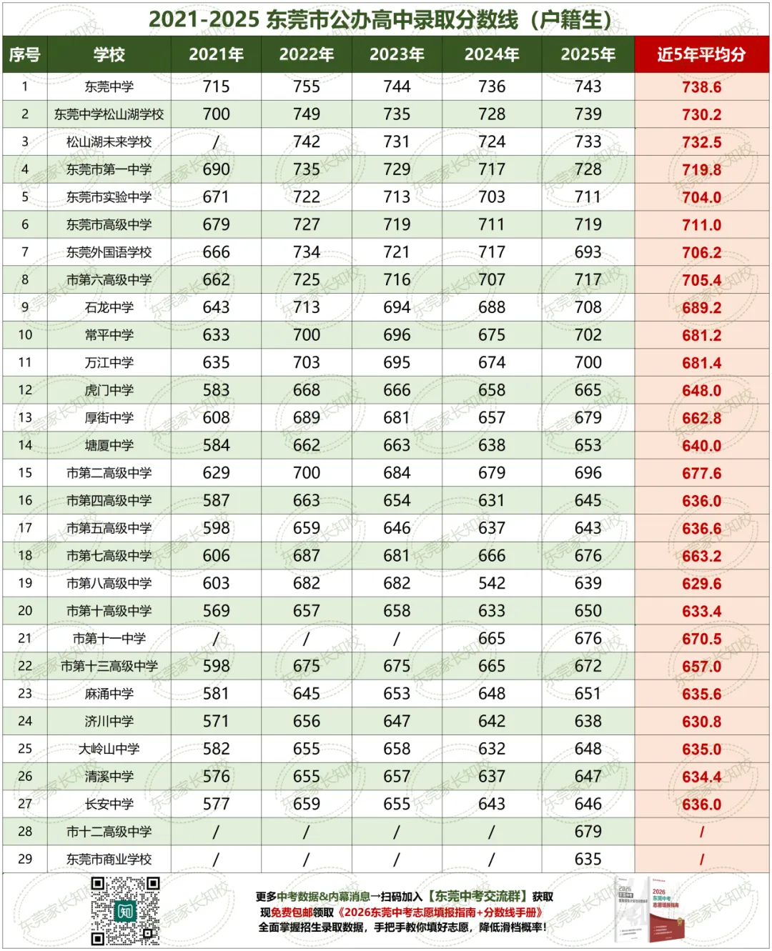 发消息“分数线”,领取【21-25年东莞普通高中录取分数线】