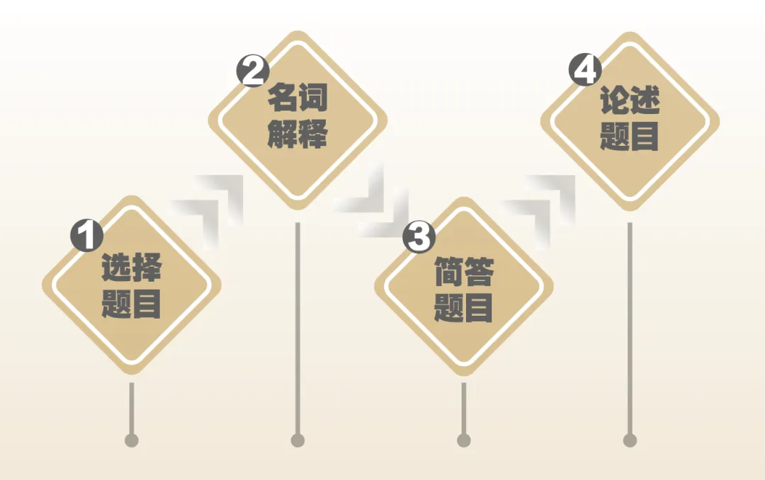 从目前的考研真题来看,大部分的学校都题型都是“选择题、名词解释、简答题、论述题”。那么,据不同题型的考查要求调整答题逻辑,掌握答题方法,才是提升备考效率的上策。