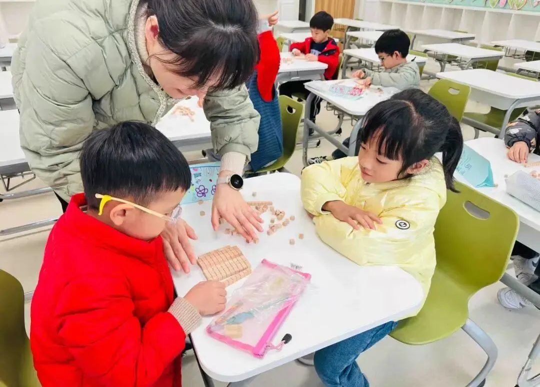这种"家校共育"模式,让家庭和学校的教育目标达成一致,为孩子们顺利开启小学生活筑牢了根基。本次活动以亲子共学为形式,通过沉浸式、互动性的数学游戏与操作环节,凝聚家校共育合力。