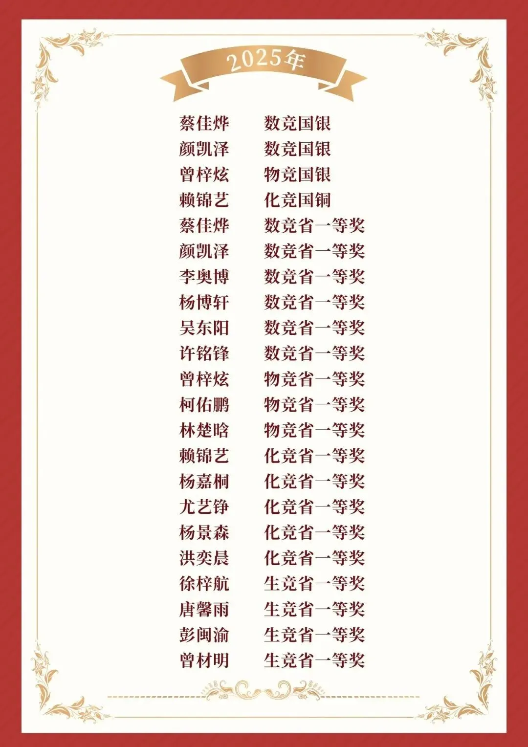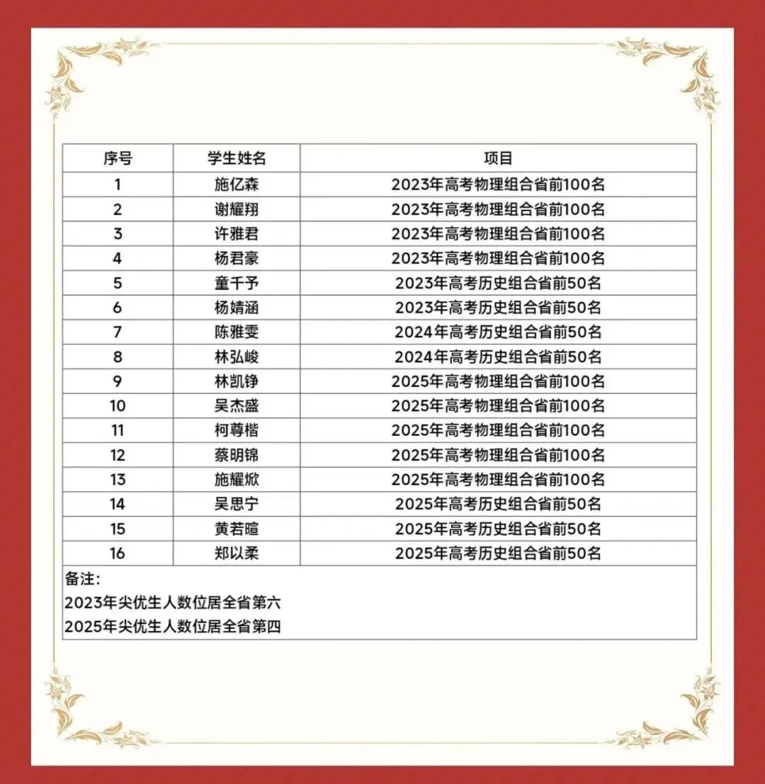 值得一提的是,2025年晋江一中在五大学科竞赛上成绩拔萃,不仅获奖位次首次超过泉州五中,还是在数学和物理这样有含金量的赛事上,对比去年的成绩单,进步是最大的一个。具体戳:晋江一中赶超泉州五中!?2025五大学科竞赛泉州排行榜出炉!
