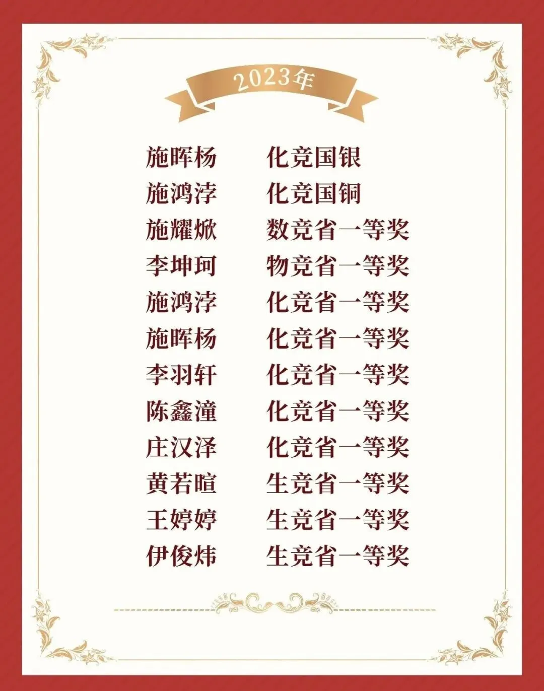 省一等奖及以上获奖名单
