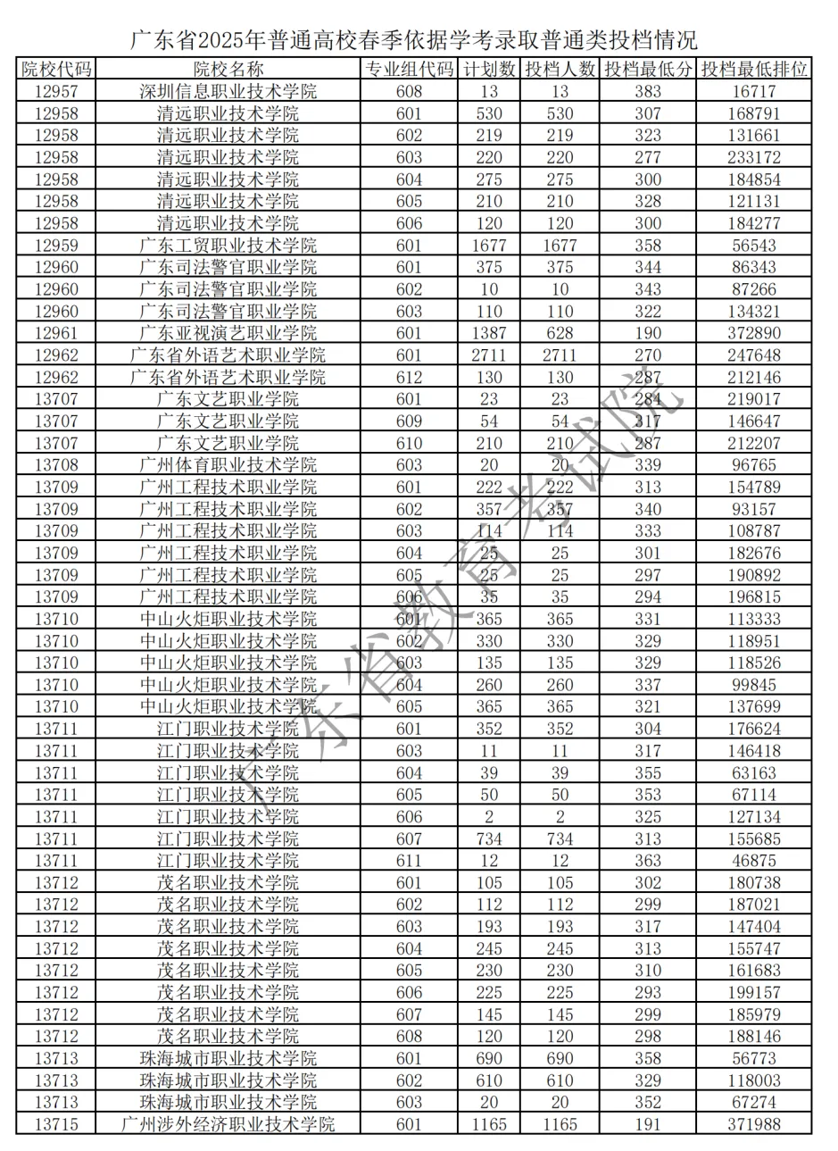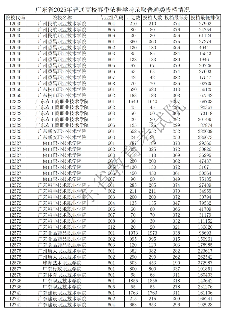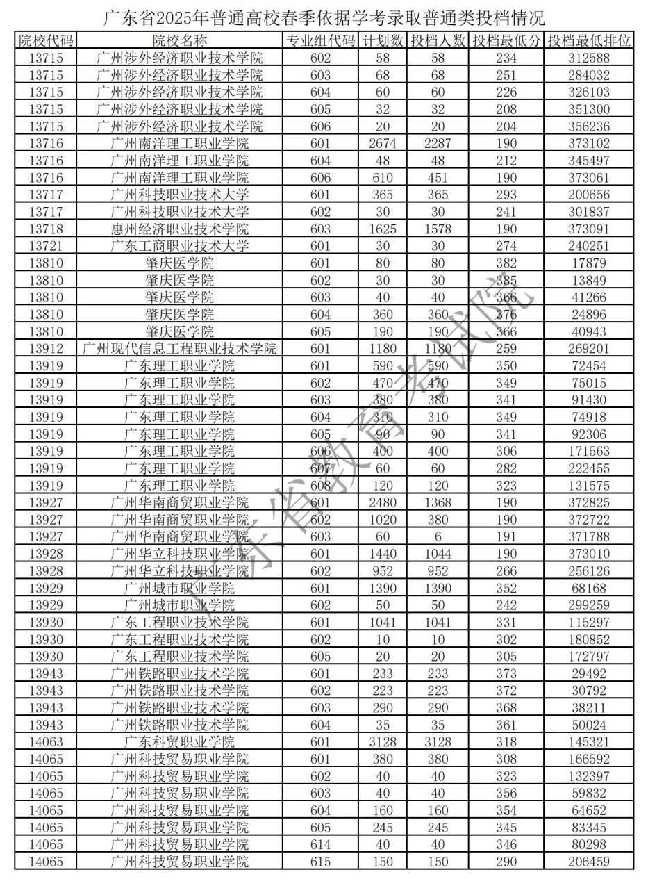 2025 广东春季高考各校录取分 + 排位官方汇总来了!公办民办分数线、院校排位差一目了然,2026 届考生择校、定目标的核心参考,速存备用!