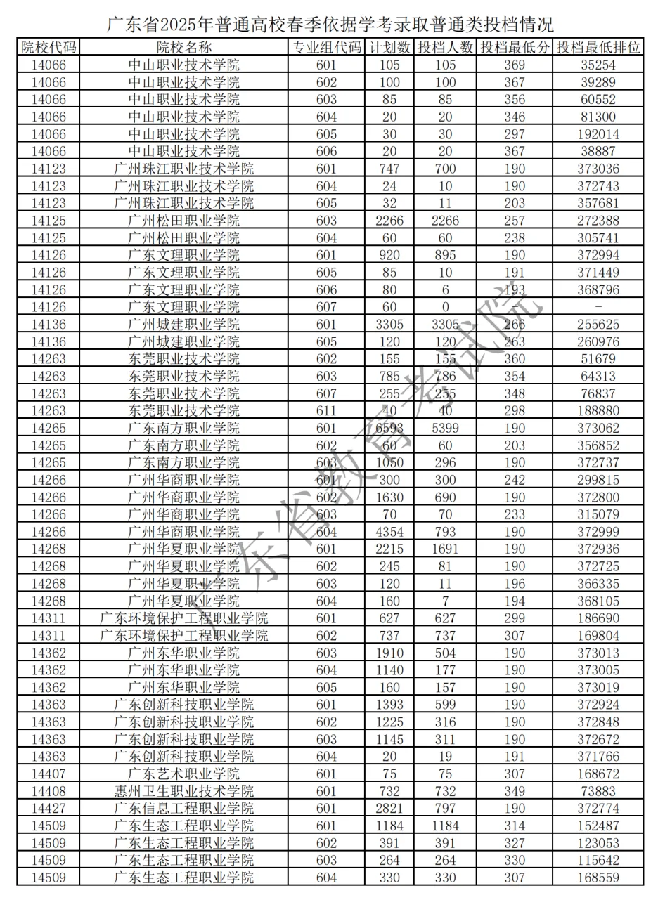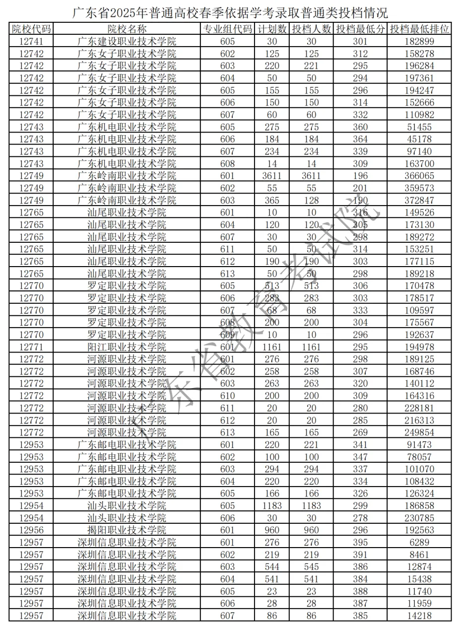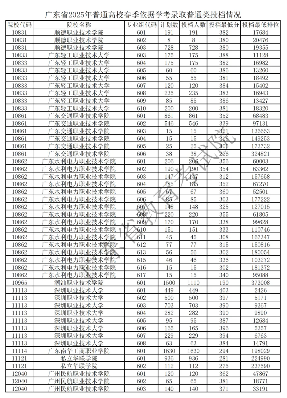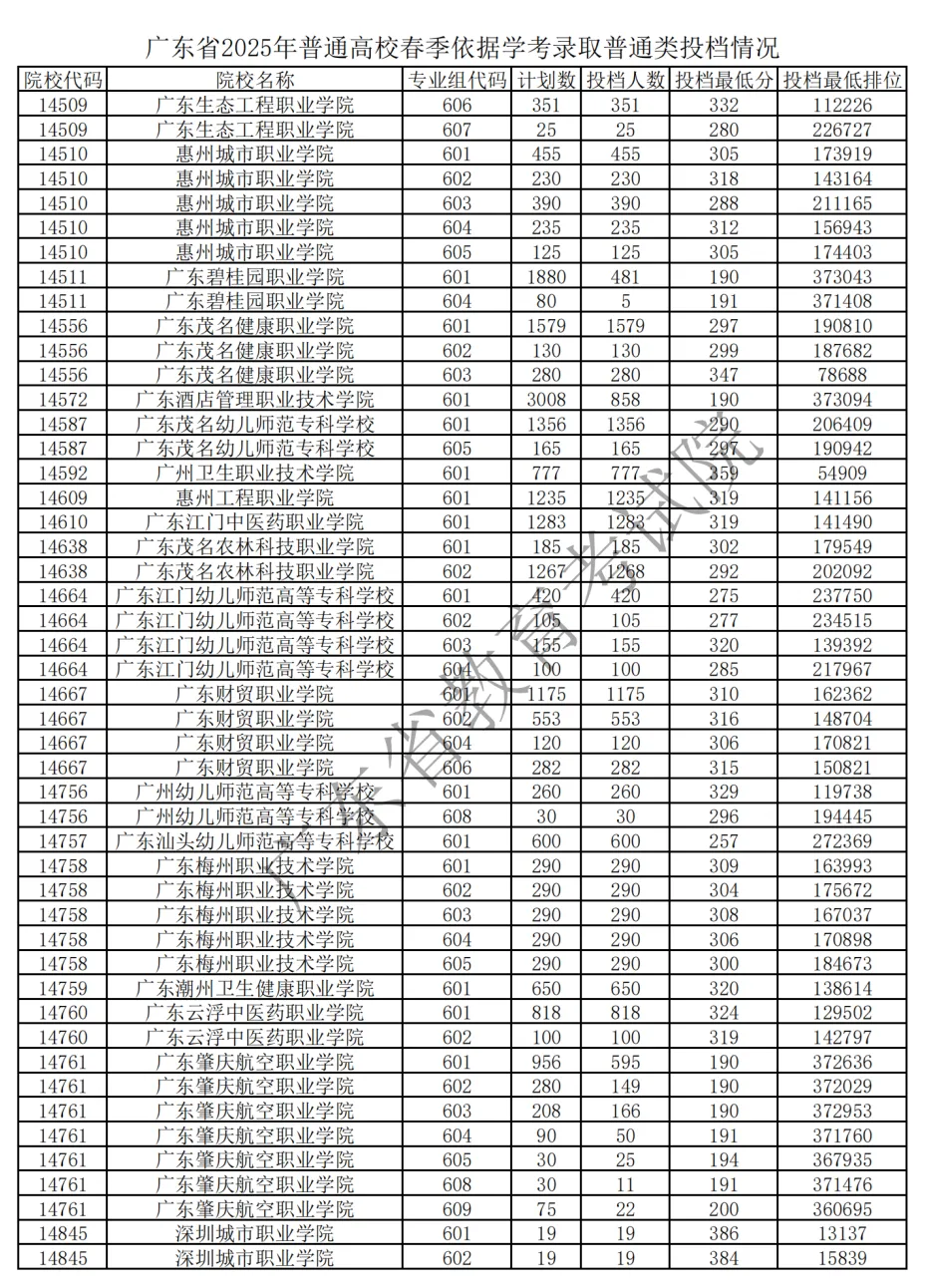 2025 广东春季高考各校录取分 + 排位官方汇总来了!公办民办分数线、院校排位差一目了然,2026 届考生择校、定目标的核心参考,速存备用!