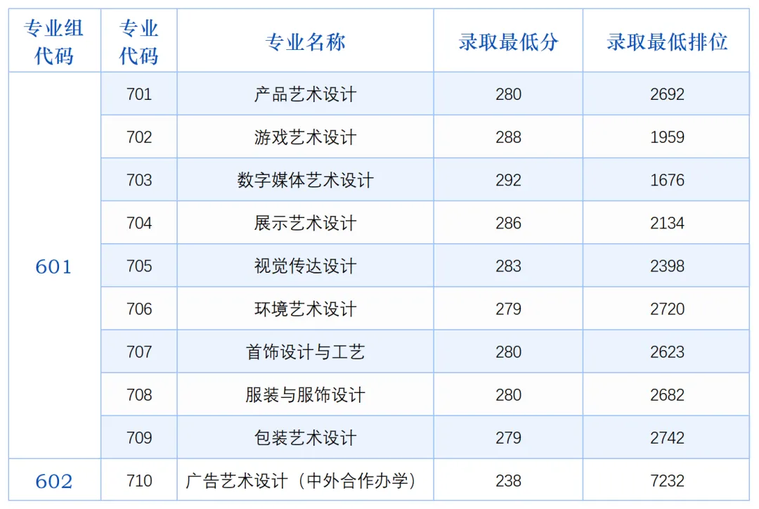 学考美术类投档分数线